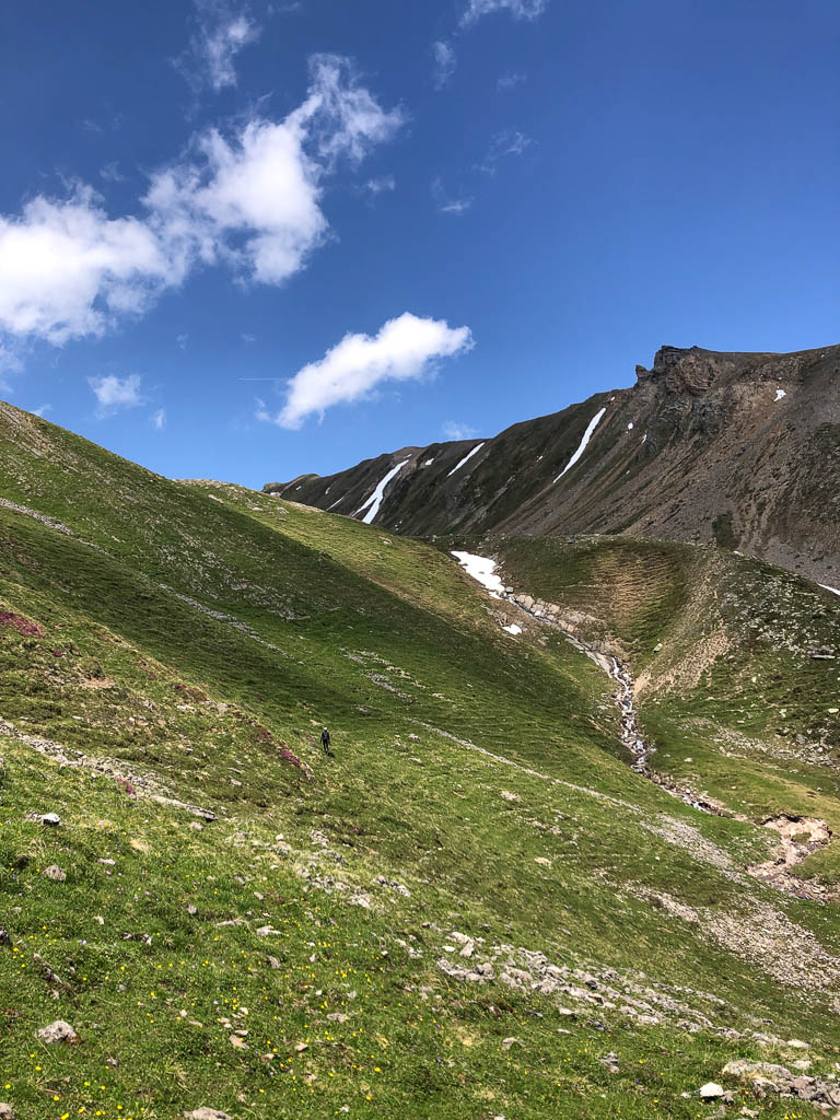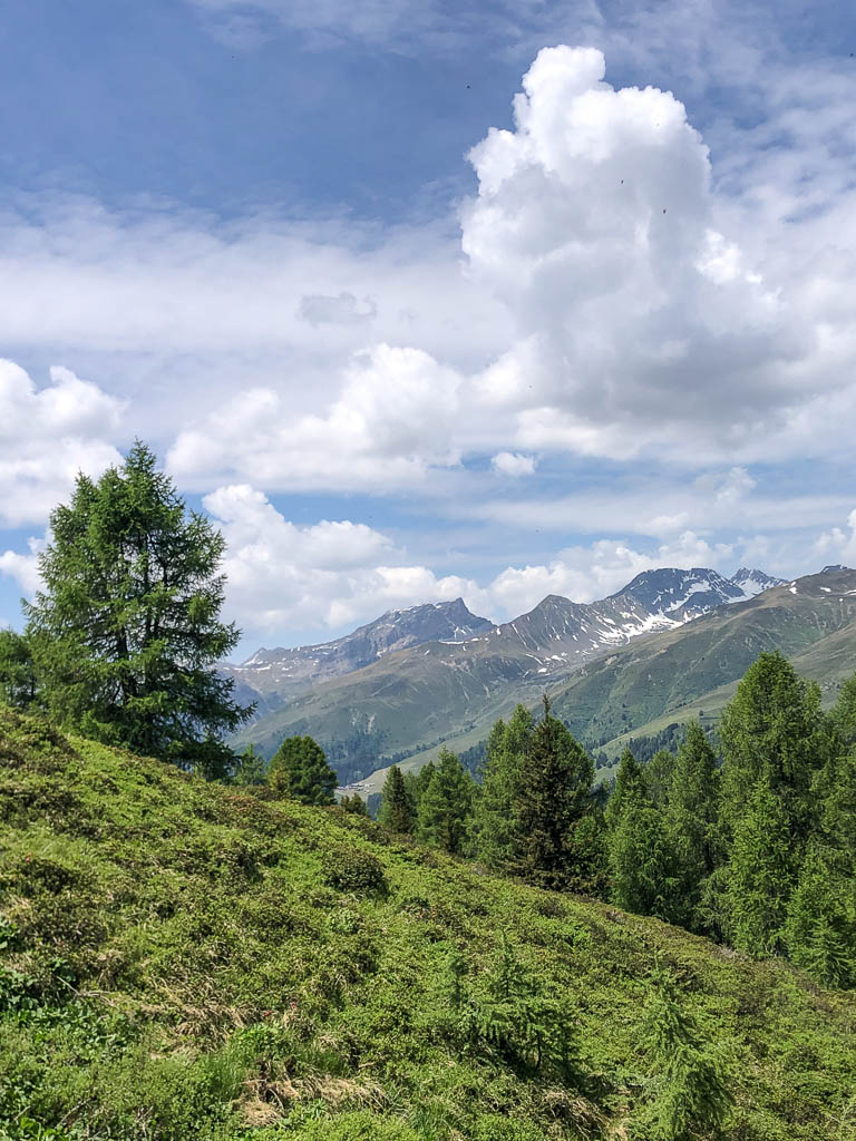 Im Hintergrund ist der Tiaun zu sehen. Auf dem Weg von Wiseli nach Schmitten bin ich nicht allein unterwegs: