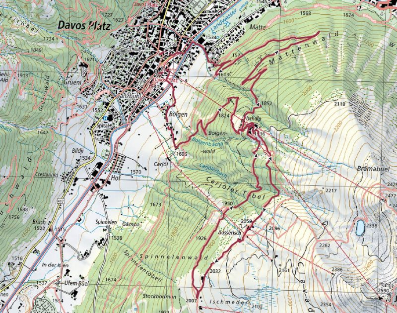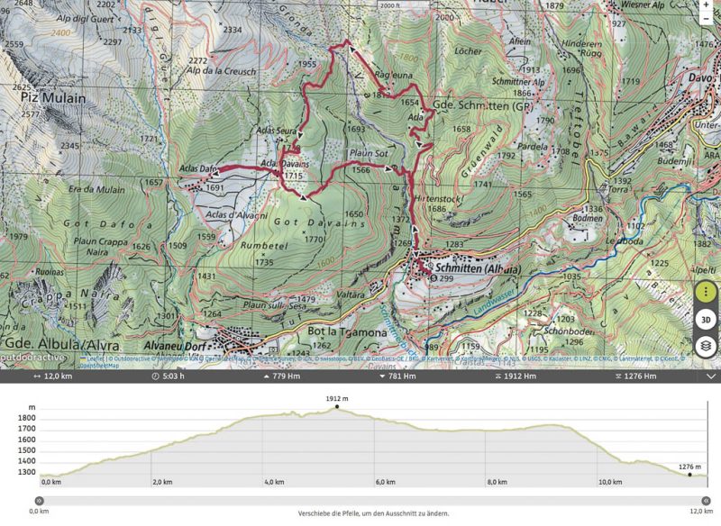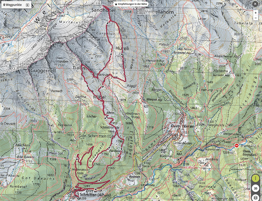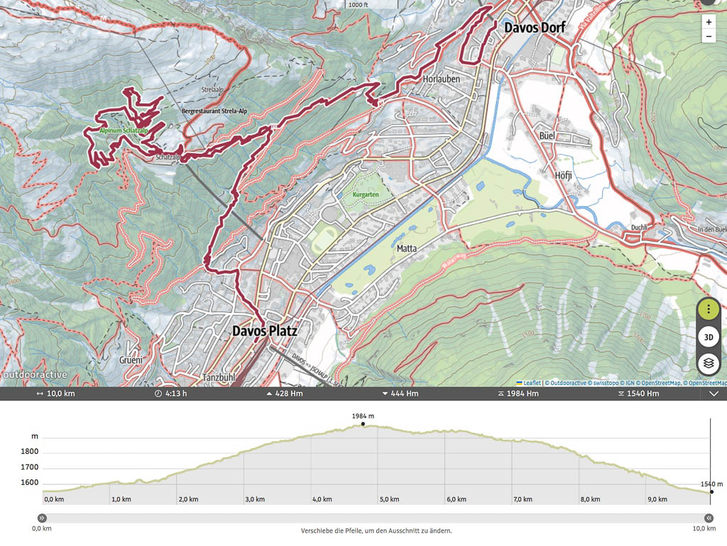 Nach etwa drei Stunden erreichen wir den Bahnhof von Davos Platz und beenden dort unsere Wanderung. Hier die Übersicht über die Strecke: