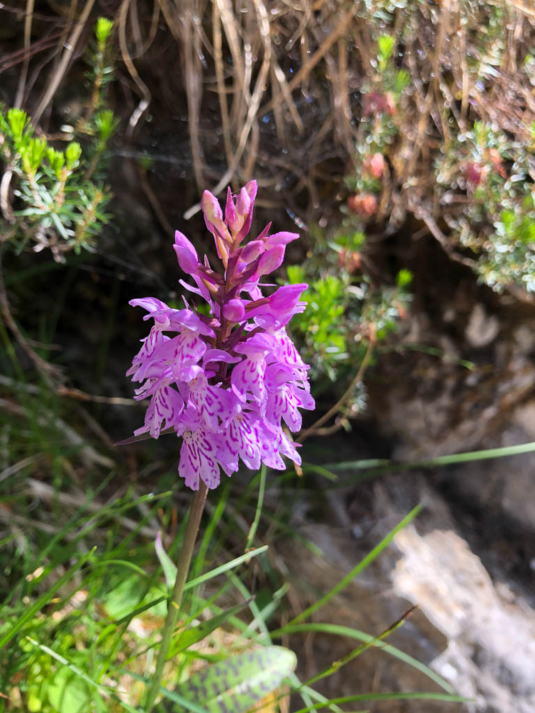 Zwei Orchideen, die mir auf dem Weg von Raglauna nach Aclas Dafora begegnen, Frauenschuh und Geflecktes Knabenkraut: