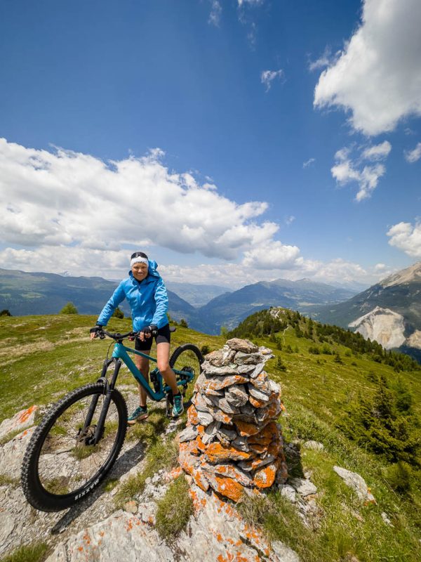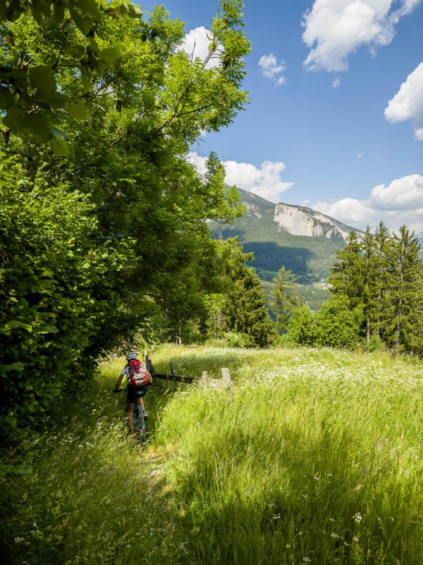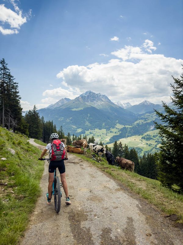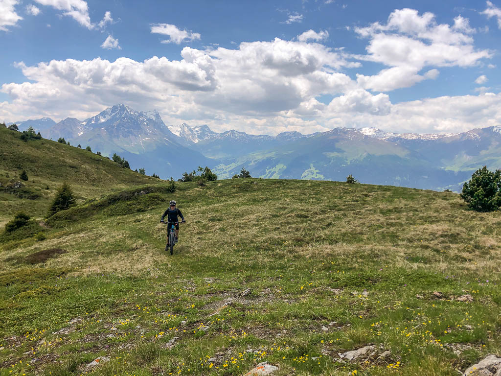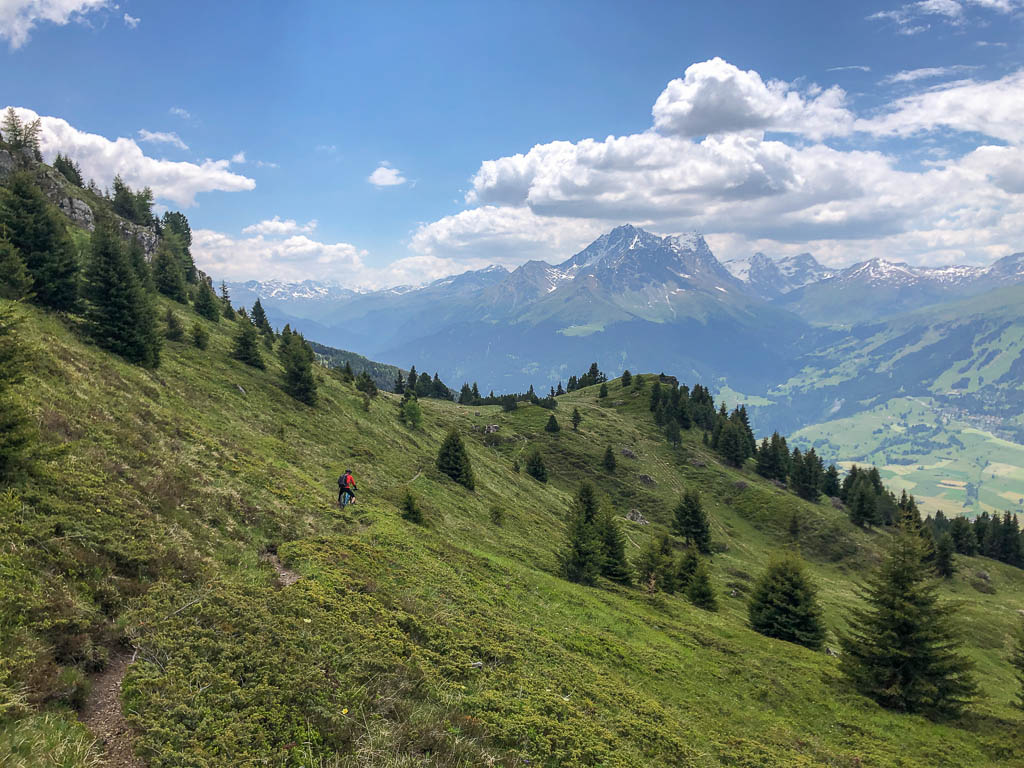 Von Mon aus fahren wir über einen Trail hinunter nach Tiefencastel: