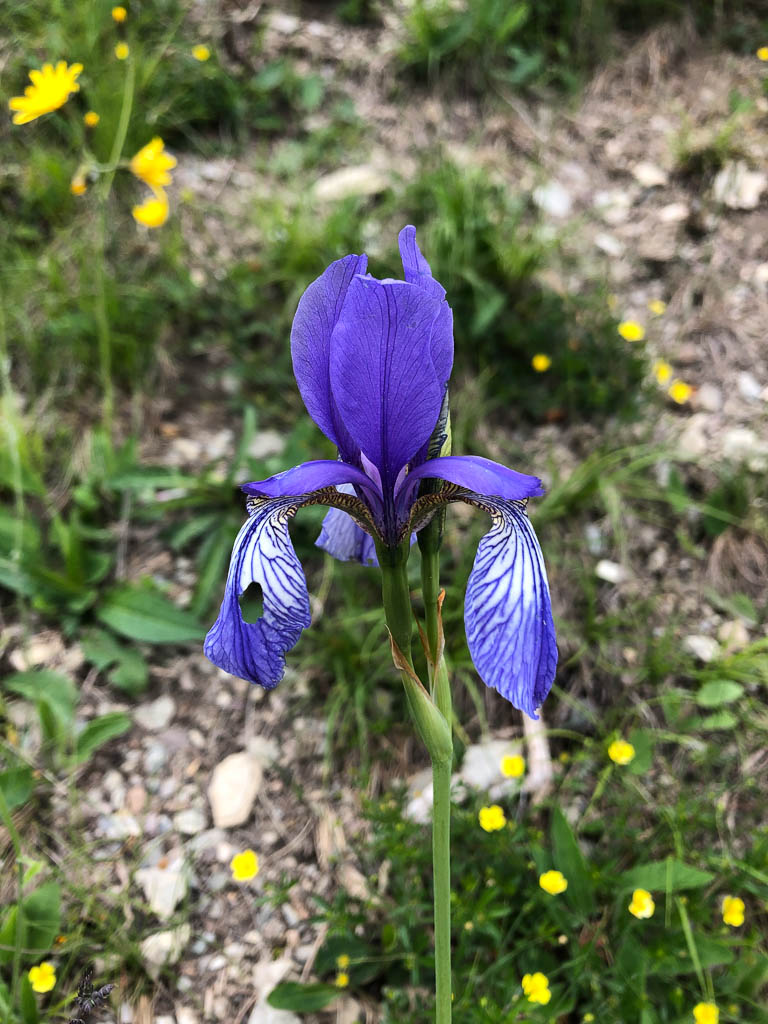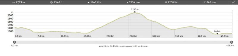 Die ersten knapp zwei Kilometer kann ich tatsächlich im Sattel sitzend hinter mich bringen. Dann aber dann wird der Weg so steinig und steil, dass ich lieber schiebe. Sicherheit geht schließlich vor.