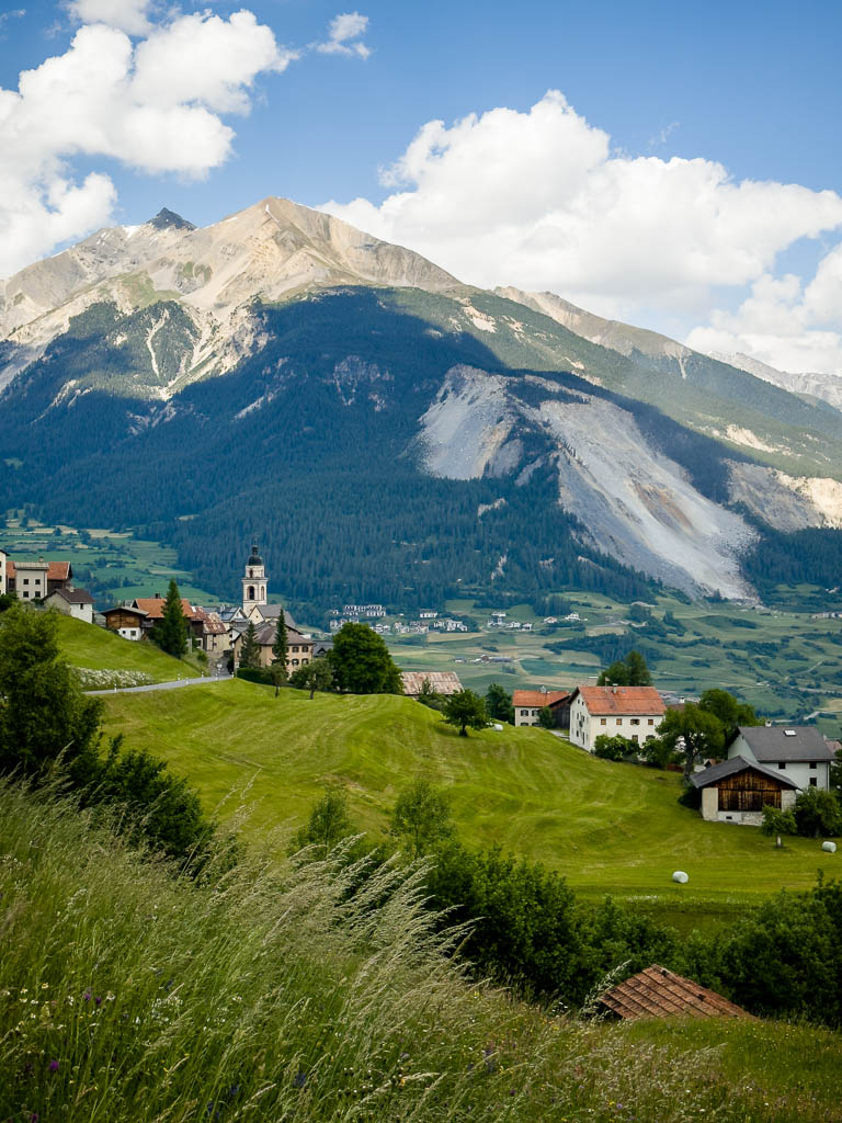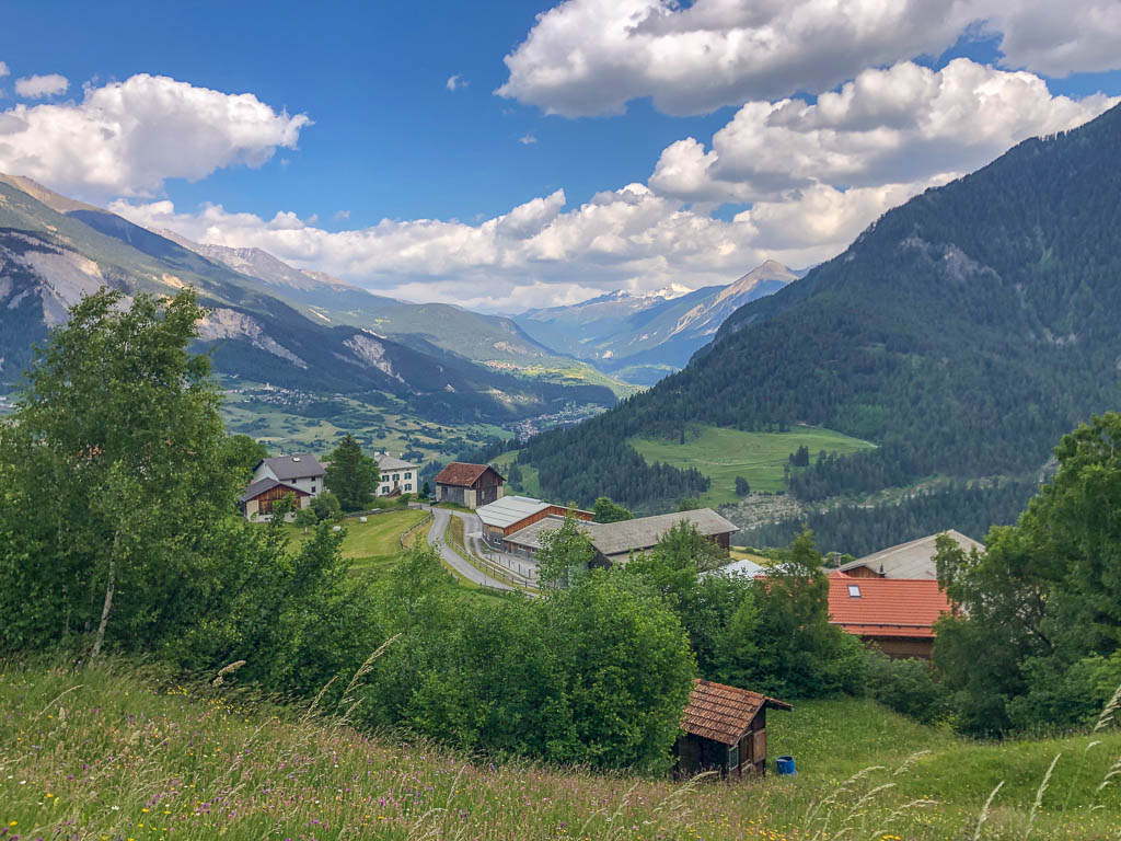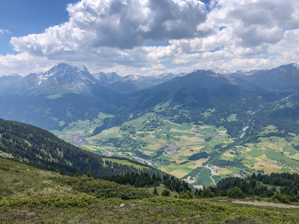 Der Blick hinunter ins Oberhalbstein, ein bei Tiefencastel beginnendes Tal, das von der Julia durchflossen wird: