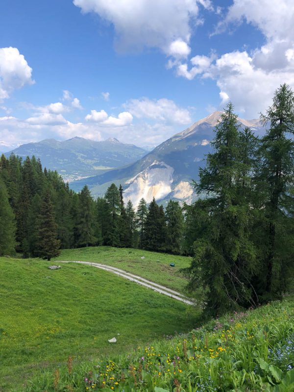 Hier bin ich noch ein Stückchen höher und kann bis nach Lenz und Lenzerheide schauen: