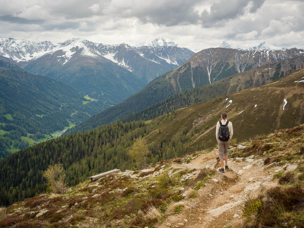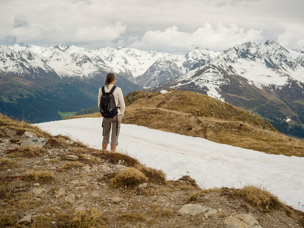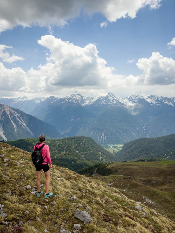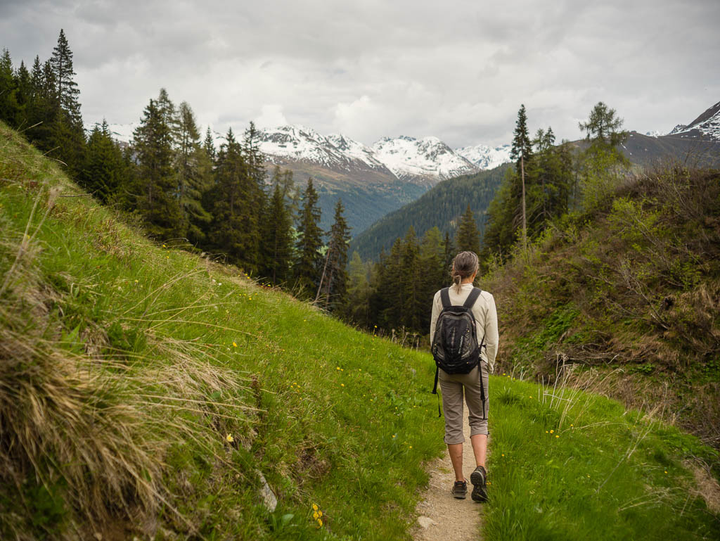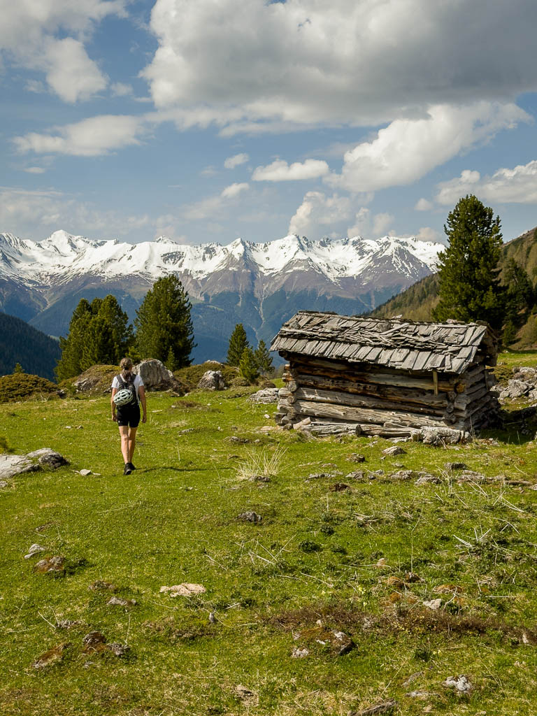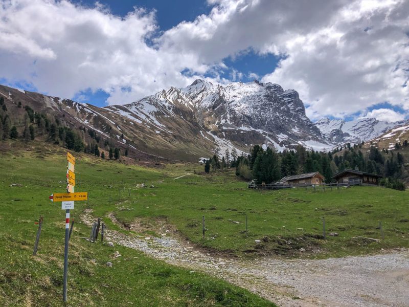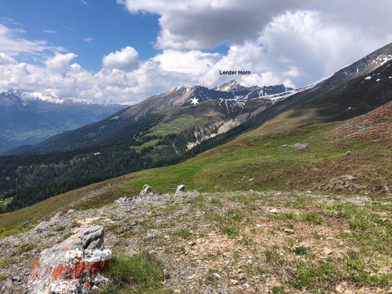 Das Dorf, das weit in der Ferne über der Hütte zu sehen ist, ist Schmitten. Man kann sogar unser Haus erkennen! Auf dem Weg zurück nach Pradatsch: