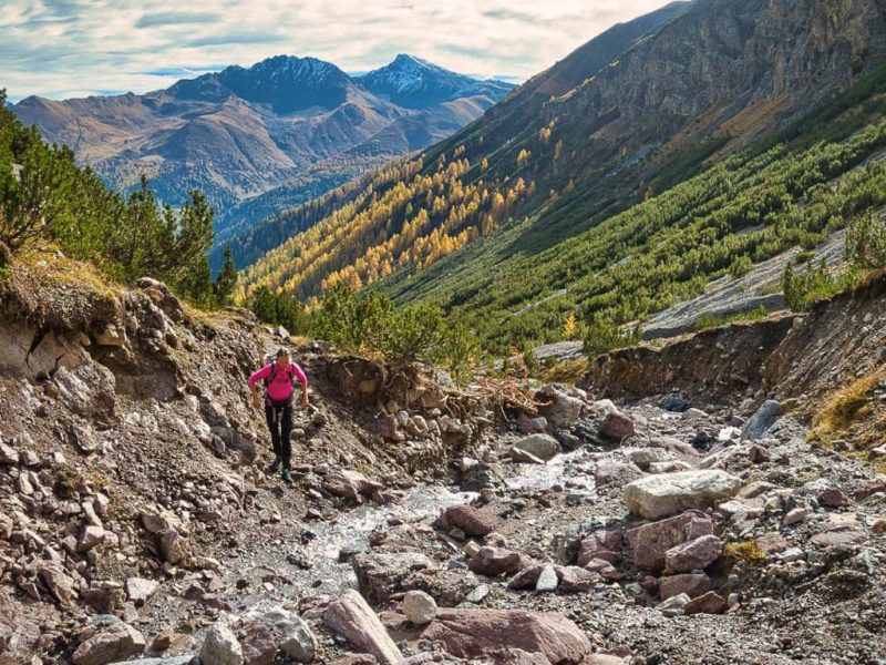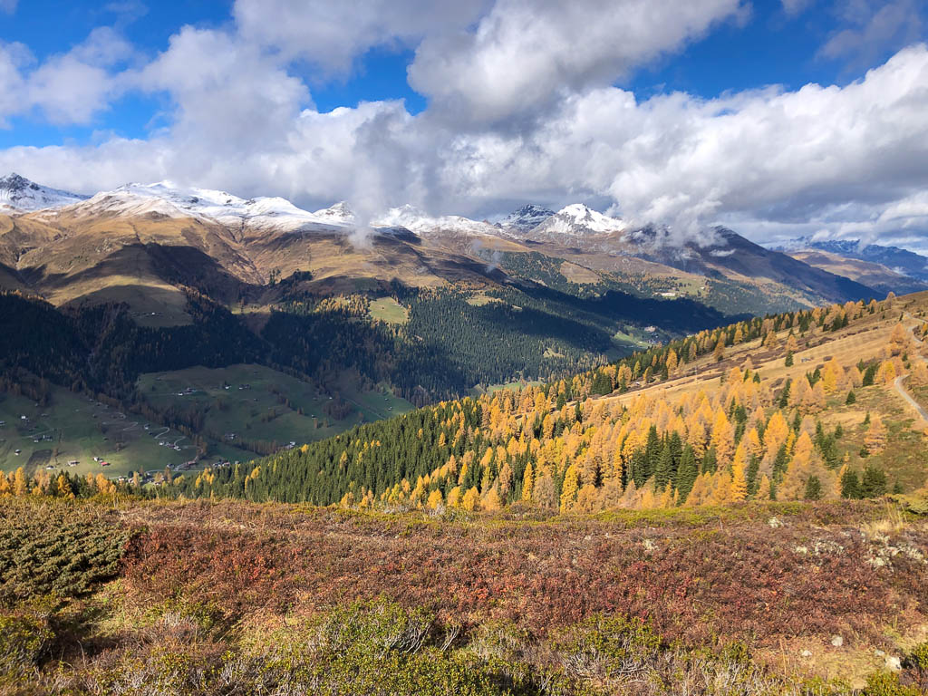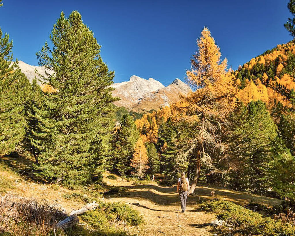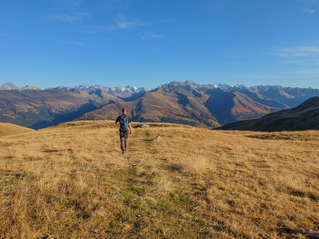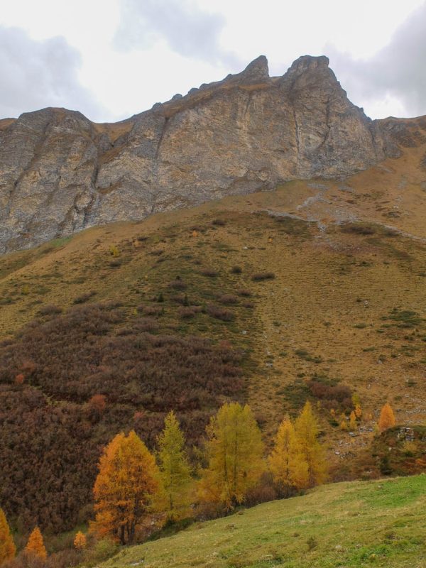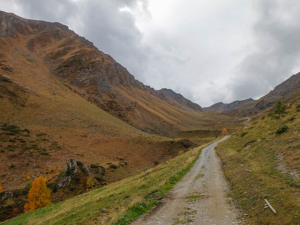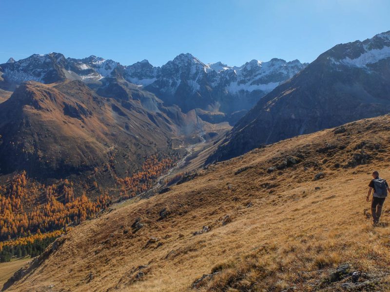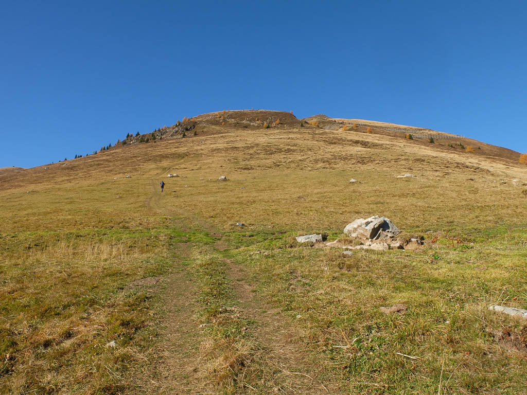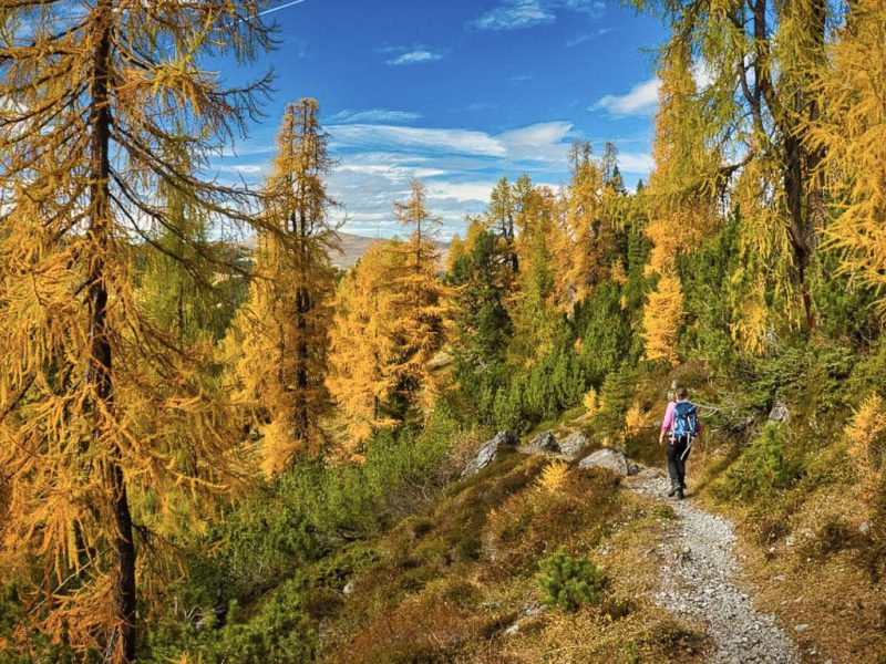 Der Weg ist nicht sonderlich steil, so dass man die Landschaft und vor allem die herbstlich gefärbten Lärchen intensiv genießen kann: