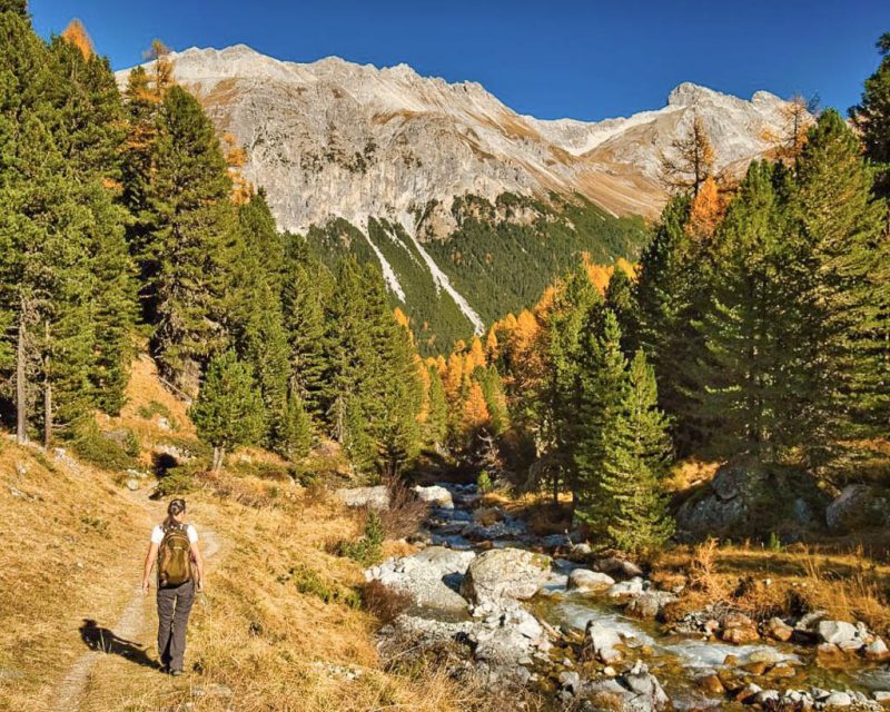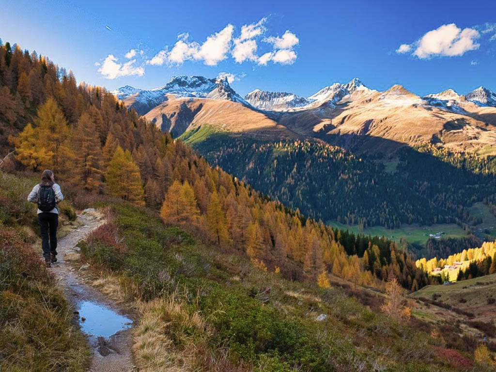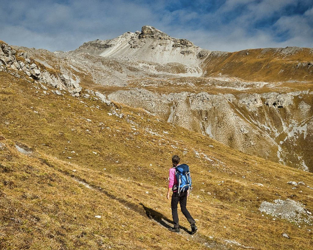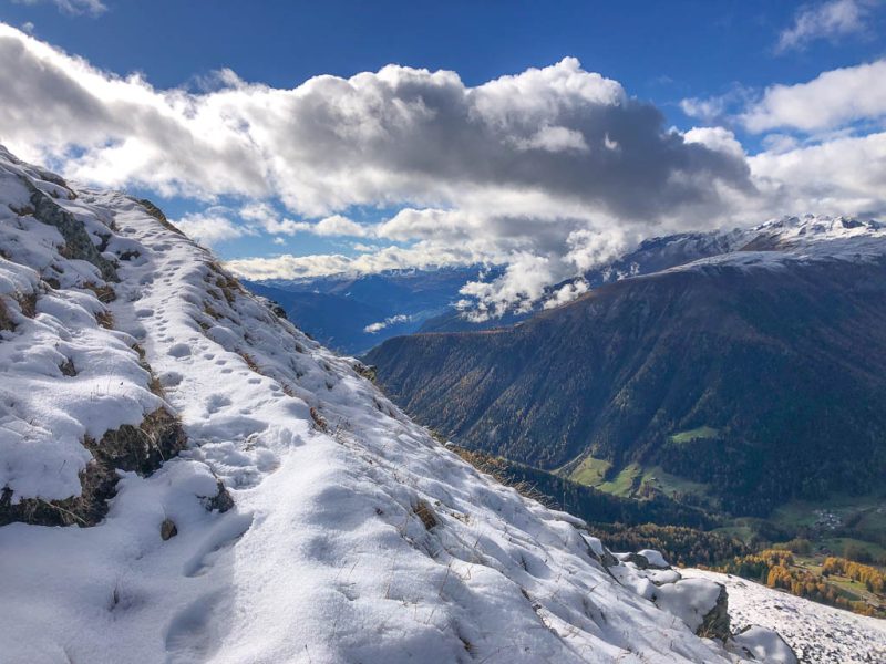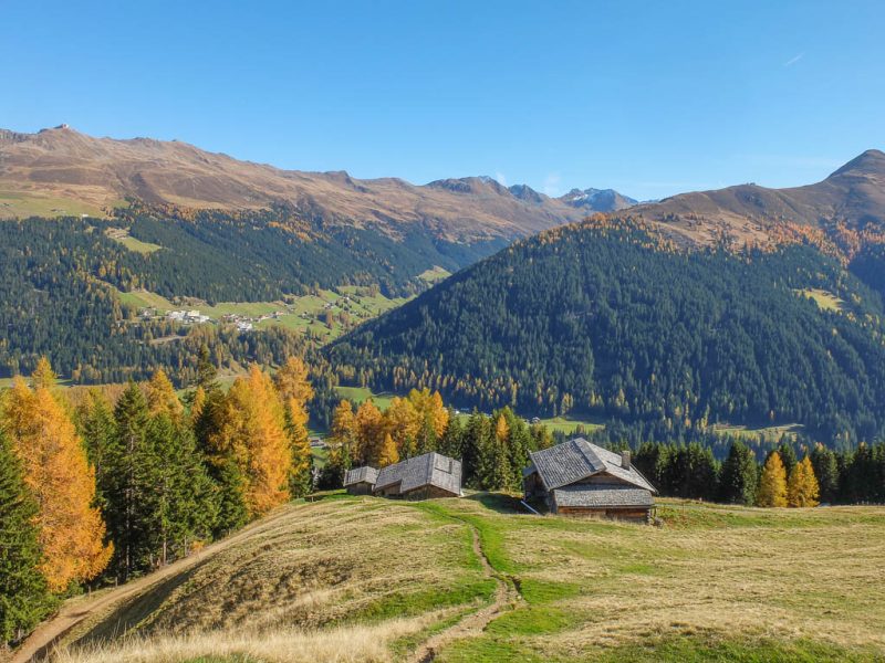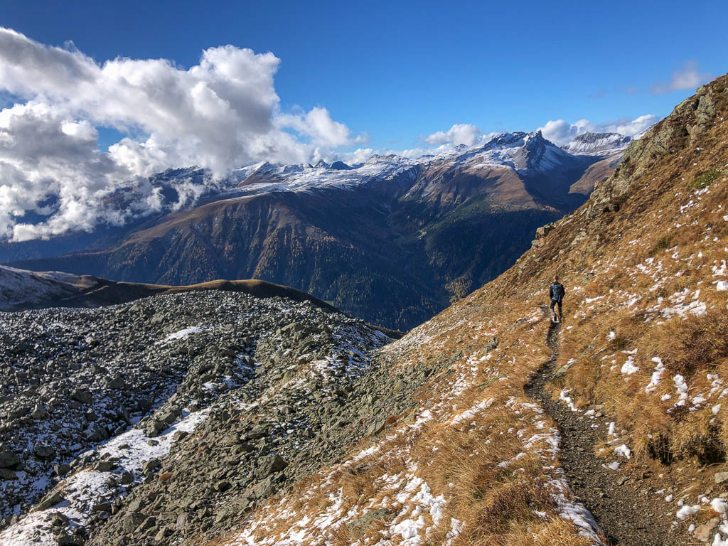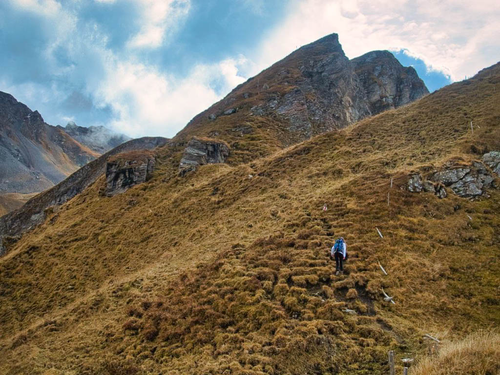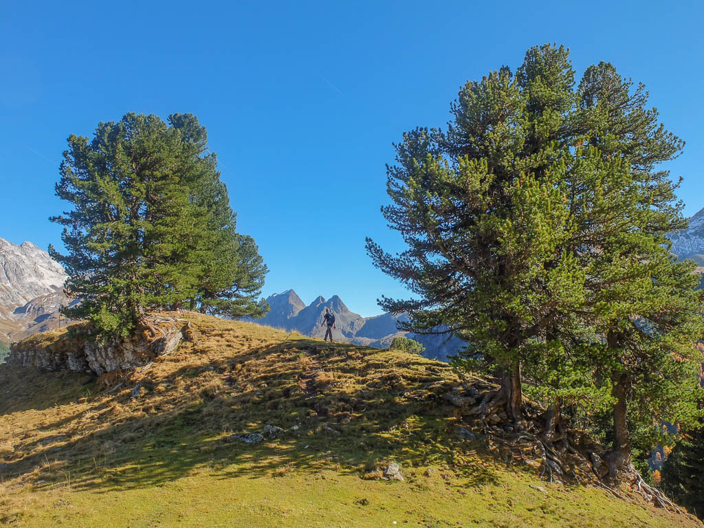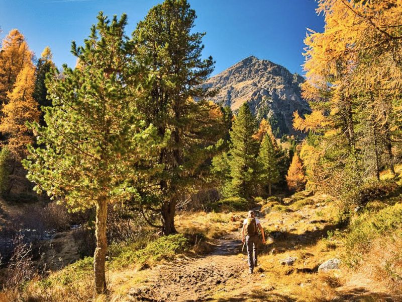 Der Weg ist nicht sonderlich steil, so dass man die Landschaft und vor allem die herbstlich gefärbten Lärchen intensiv genießen kann: