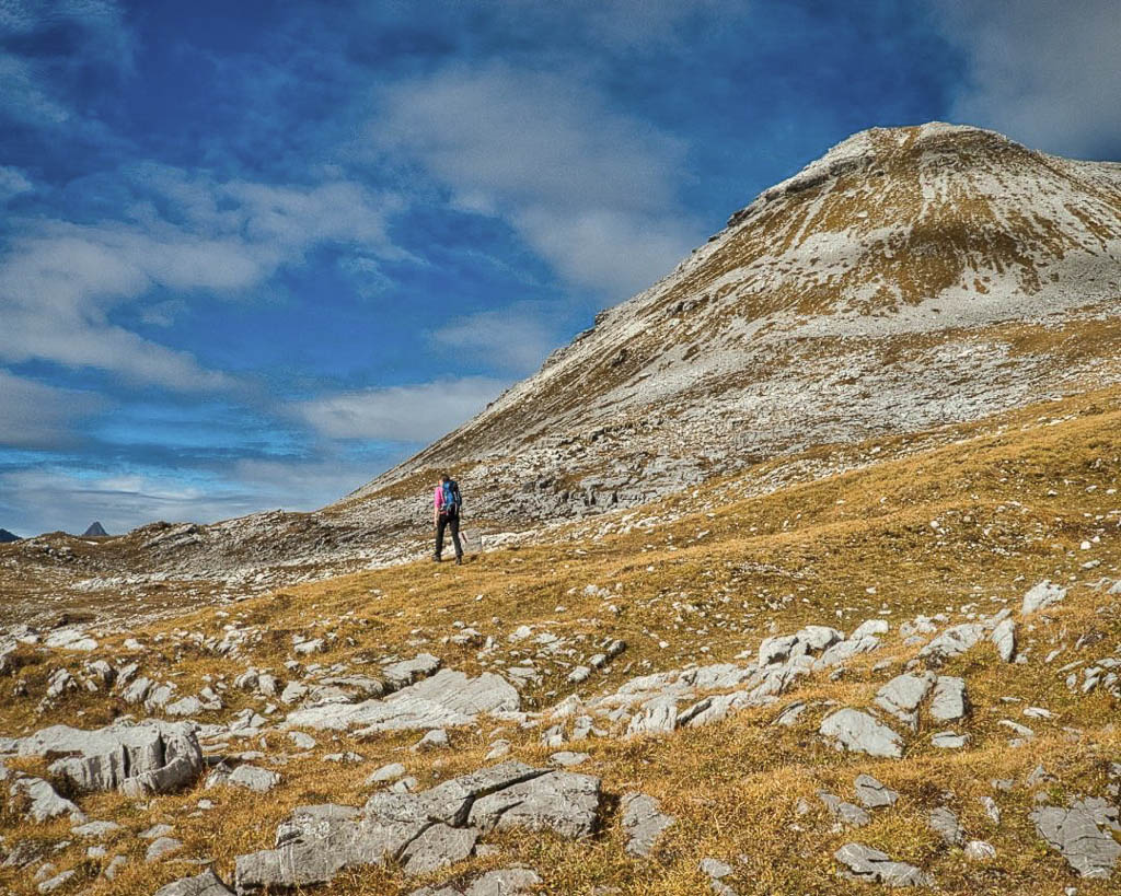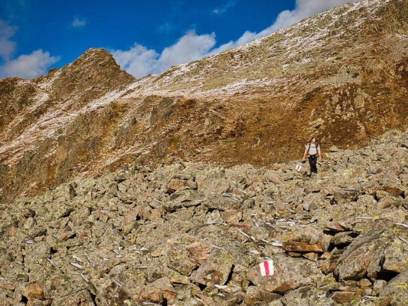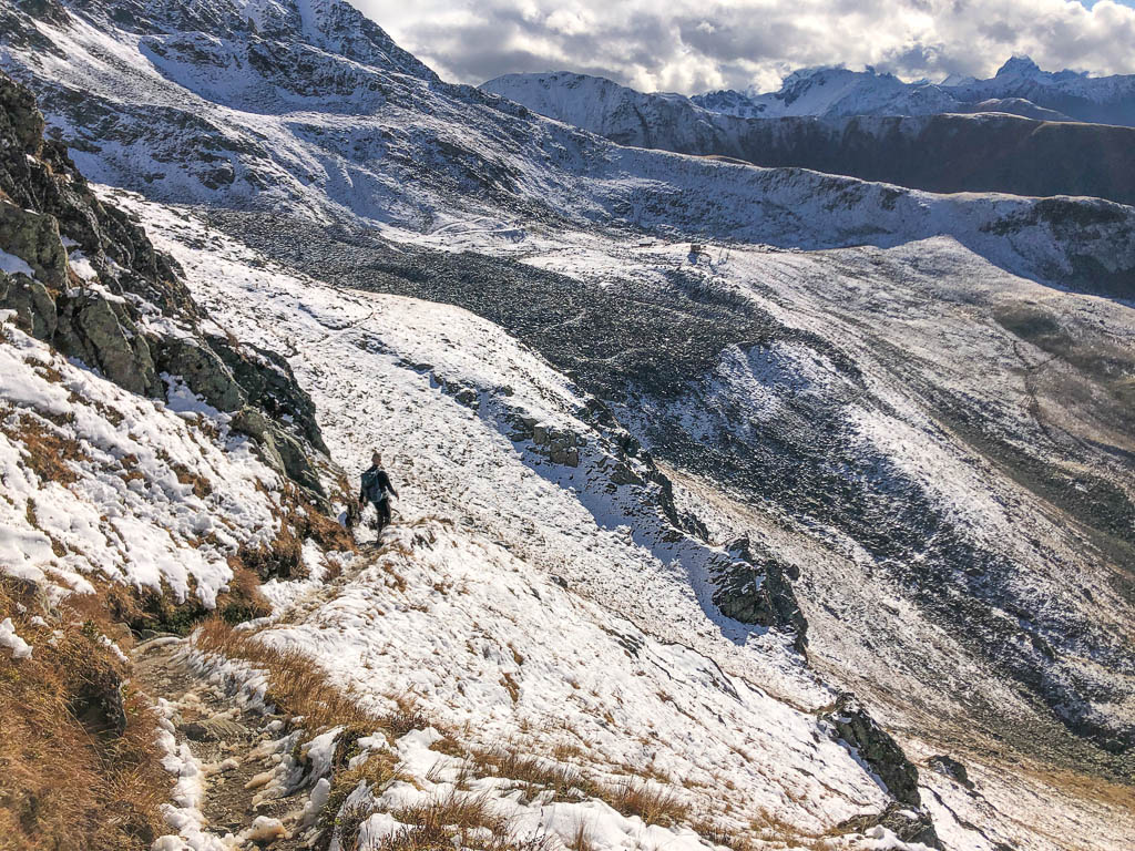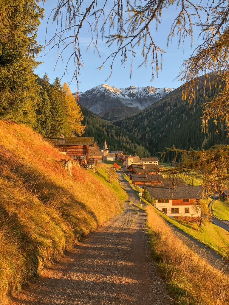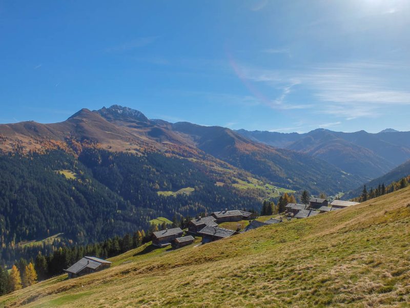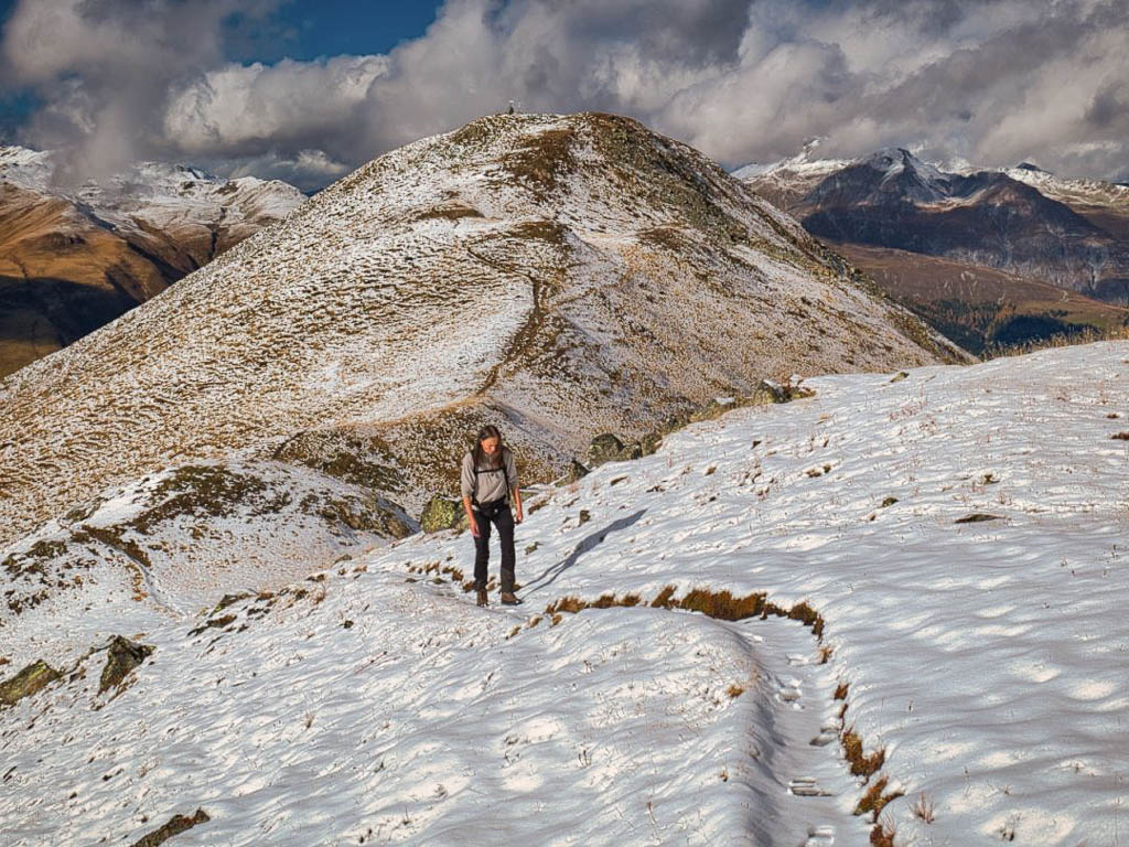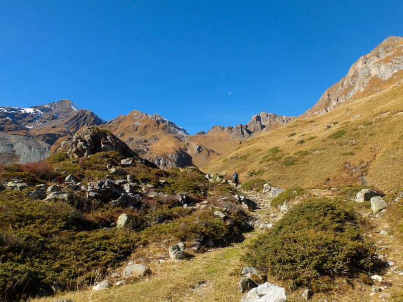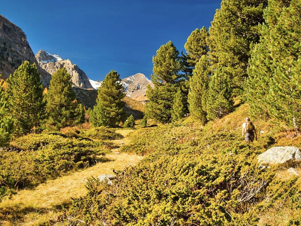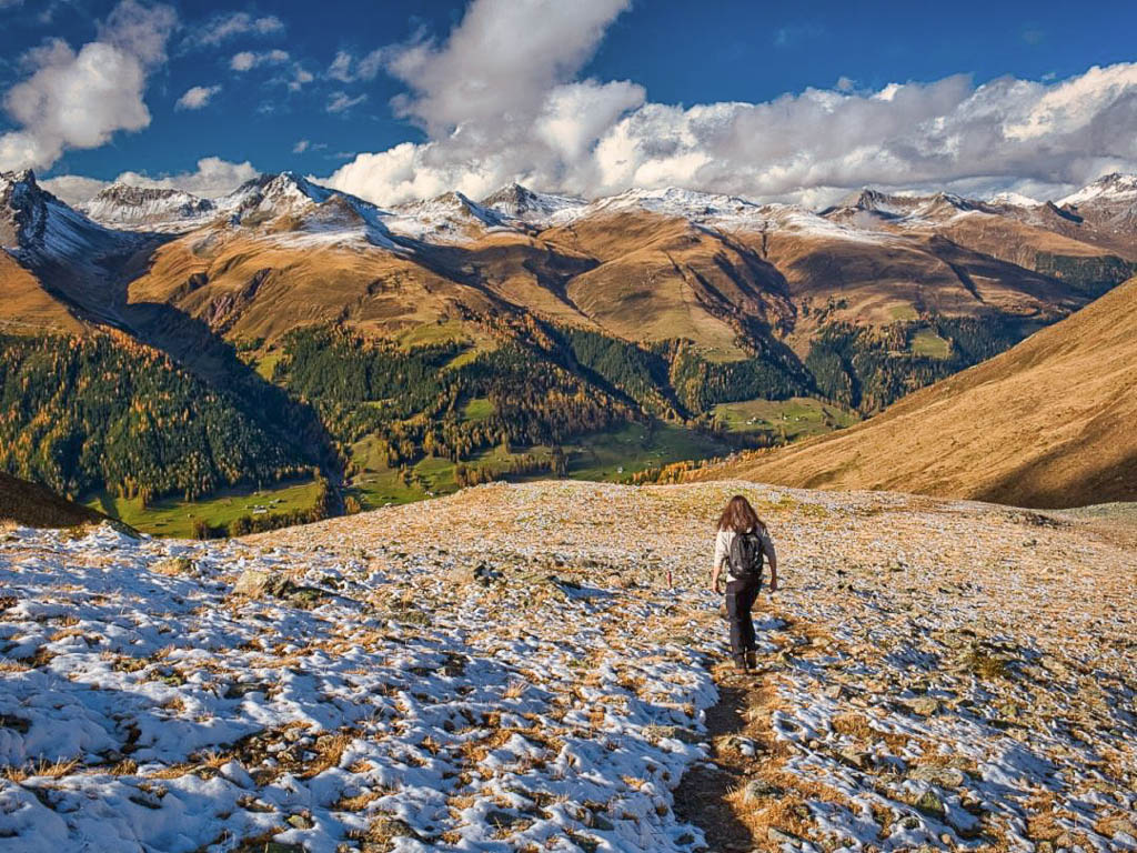 Der Weg ist nicht sonderlich steil, so dass man die Landschaft und vor allem die herbstlich gefärbten Lärchen intensiv genießen kann:
