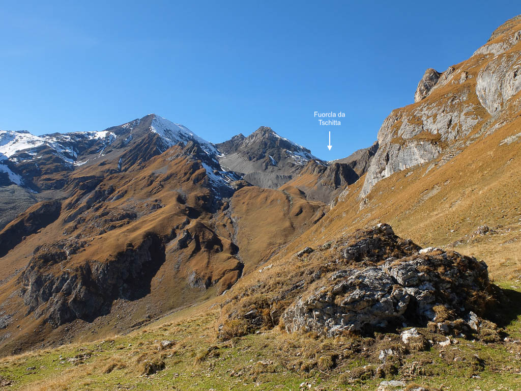 Von hier aus hat man einen wunderbaren Blick ins Welschtobel, dem Abstiegsweg von der Furcletta nach Arosa: