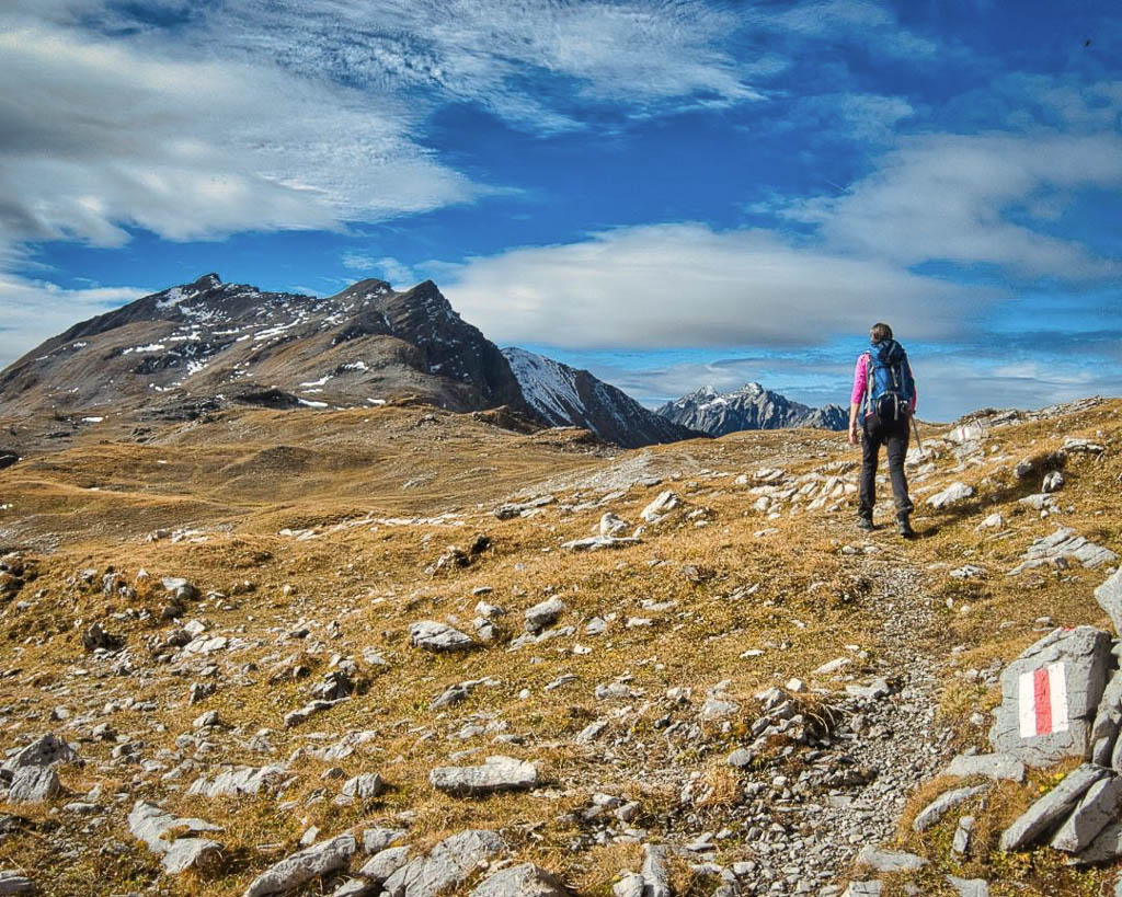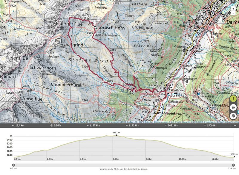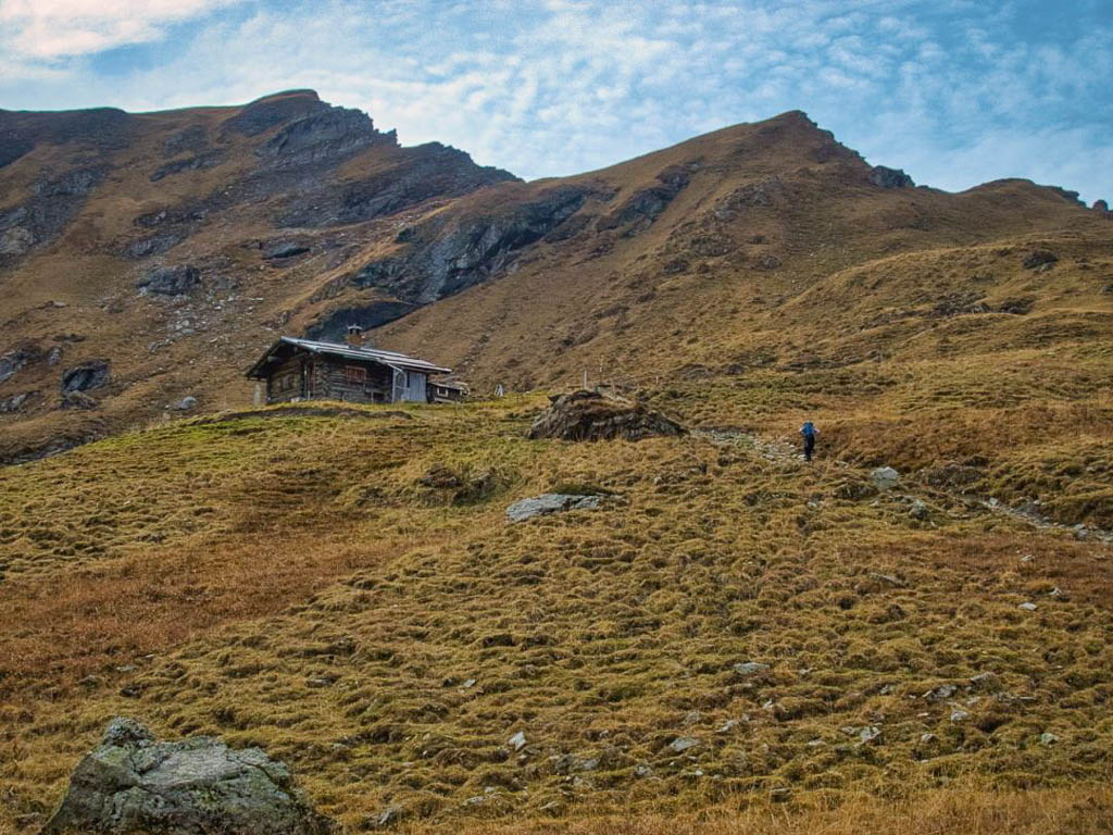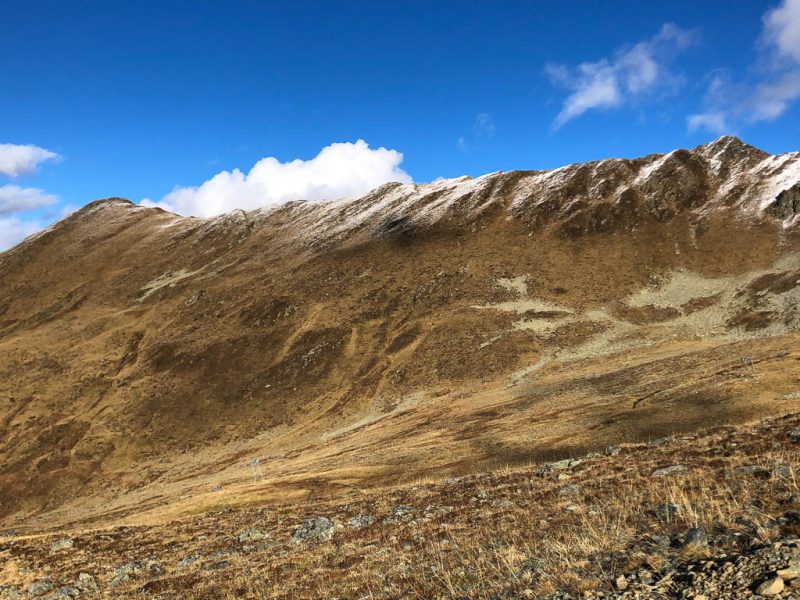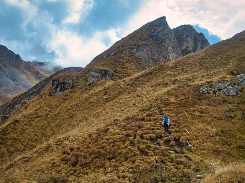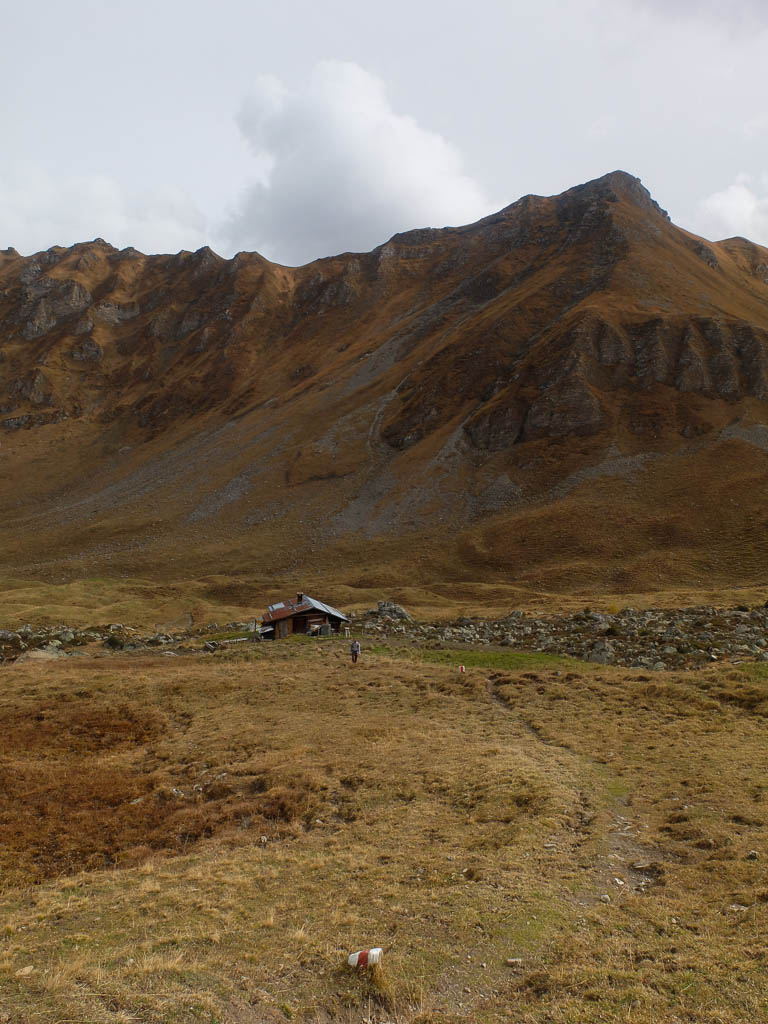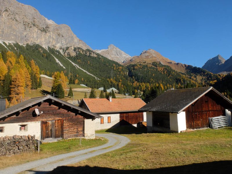 Da wir uns den Übergang über Parsennfurgga, Casannapass und Durannapass mit der Fahrt hinauf zum Weissfuhjoch deutlich erleichtert haben, zählt er allerdings nur halb! Irgendwann werden wir ihn deshalb „ordnungsgemäß“ von Davos Wolfgang aus begehen, allerdings nicht gerade heute. Heute nehmen wir uns einen anderen Übergang vor, das Alteiner Fürggli. Start ist an der Postbushaltestelle von Davos Ortolfi. Von dort aus geht es zunächst hinauf zur Bärentaler Alp: