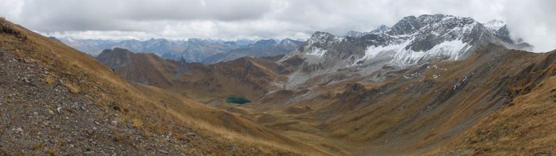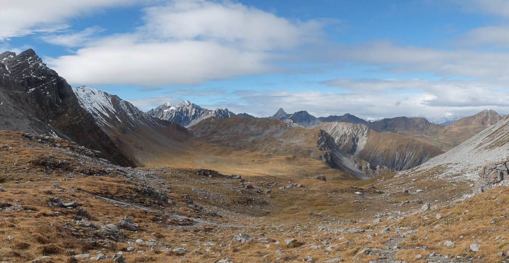 Kurz darauf erreichen wir das Alteiner Fürggli. Das Panorama Richtung Norden: