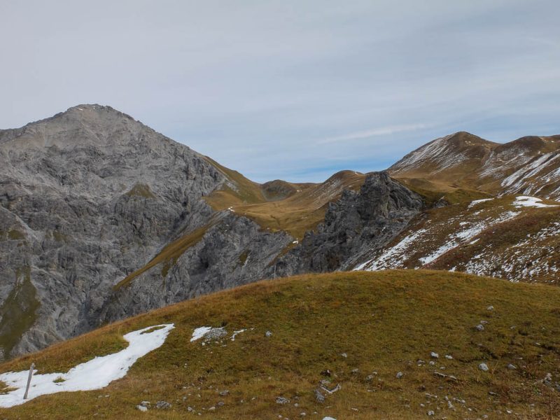Der Abstieg vom Witihüreli ist weitaus weniger kompliziert und schon bald stehen wir wieder auf dem Wanderweg und laufen weiter Richtung Jatzhorn. Ein Blick zurück: