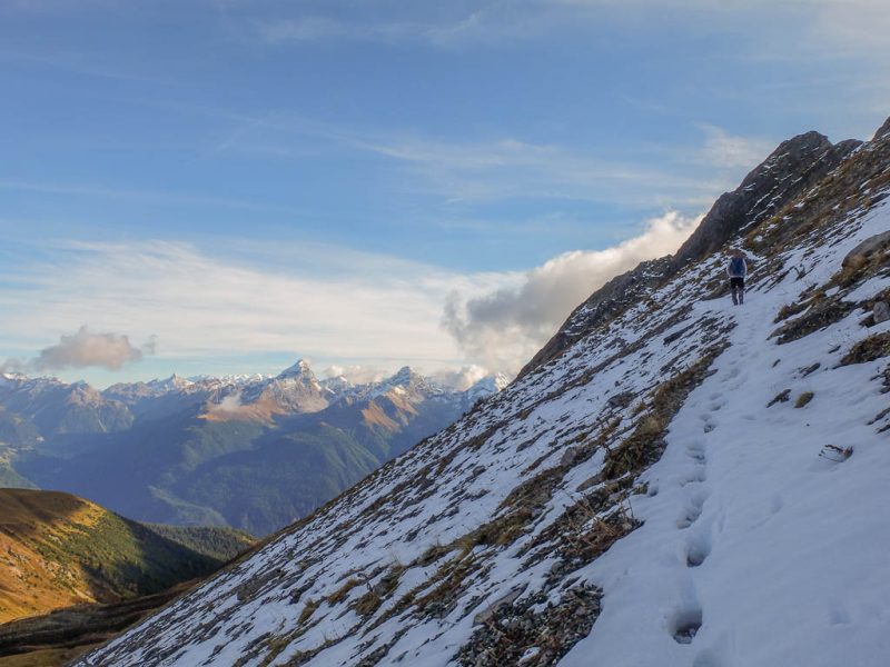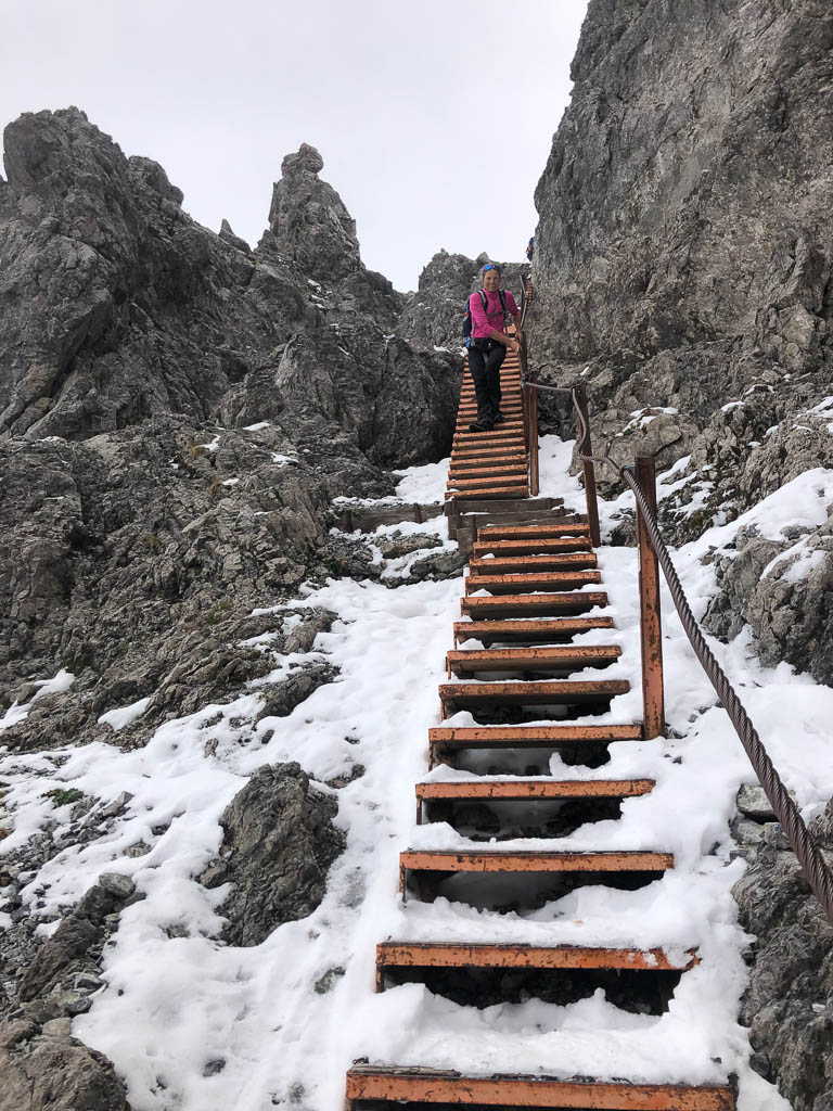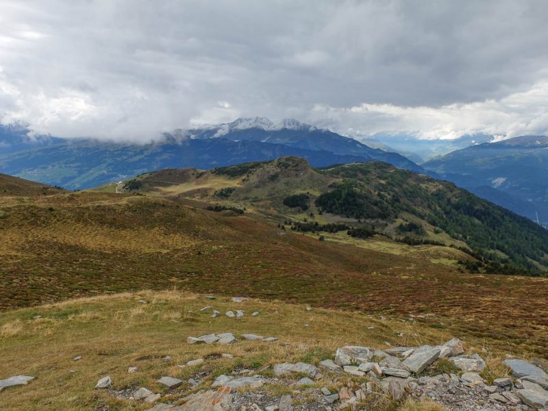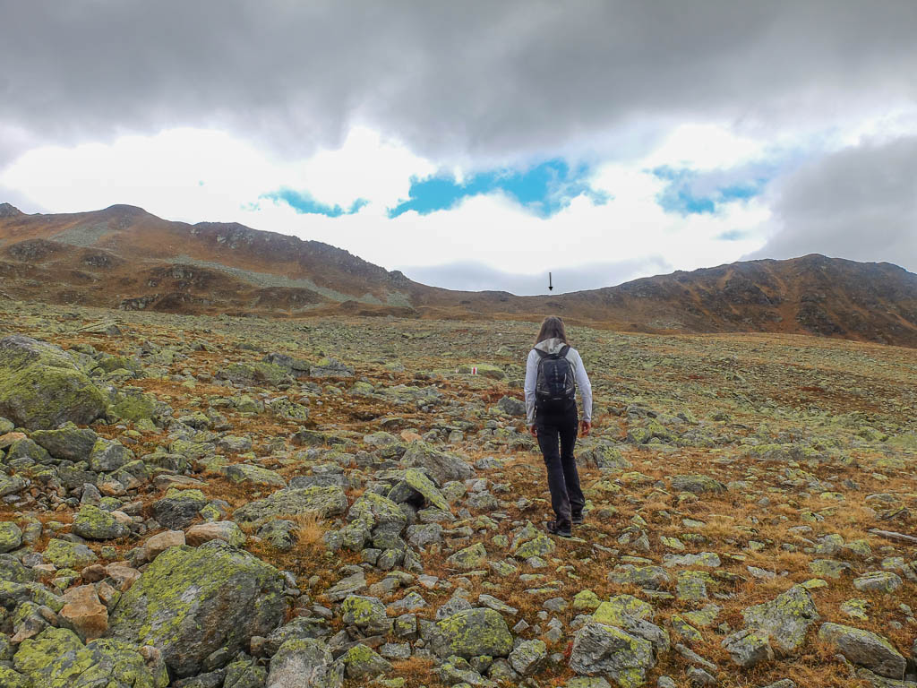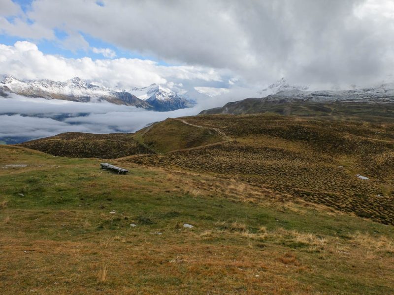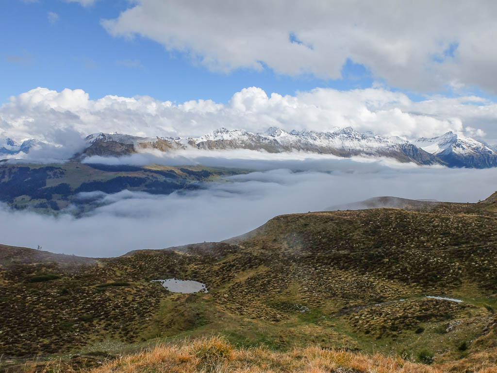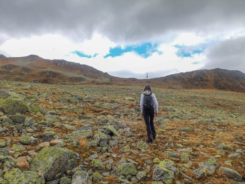 Hier standen wir schon einmal in strömendem Regen: Eine kurze Gratwanderung vom Jakobshorn zum Jatzhorn. Der weitere, zum Jakobshorn führende Weg: