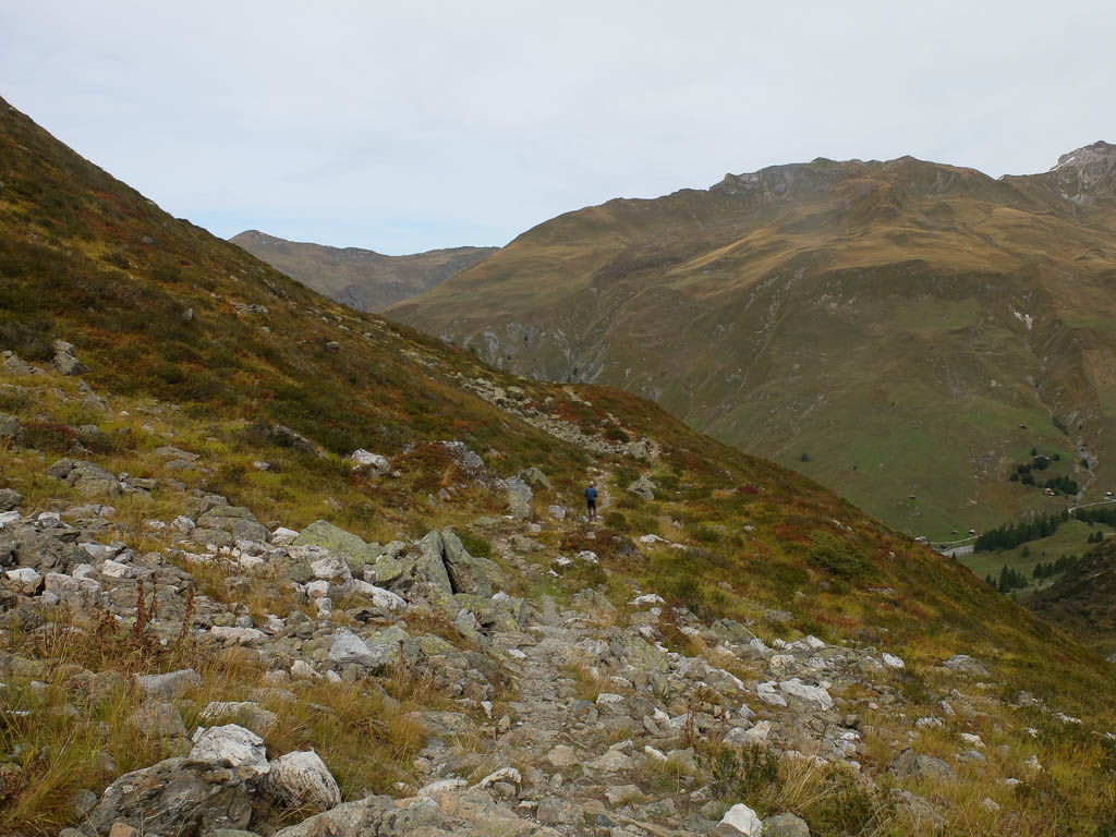 Hier begann am 27. Juli unsere Gratwanderung zum Wuosthorn: Tällihorn, Felahorn und Wuosthorn, eine Drei-Gipfel-Tour. Heute geht es für uns Richtung Jakobshorn weiter: