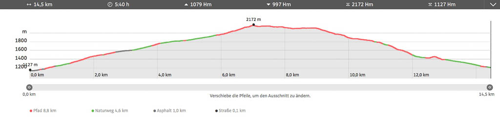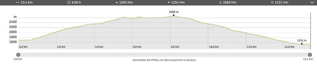 Er bildet den Schlusspunkt unserer heutigen Tour, für die wir vier Stunden und fünfzig Minuten benötigen.