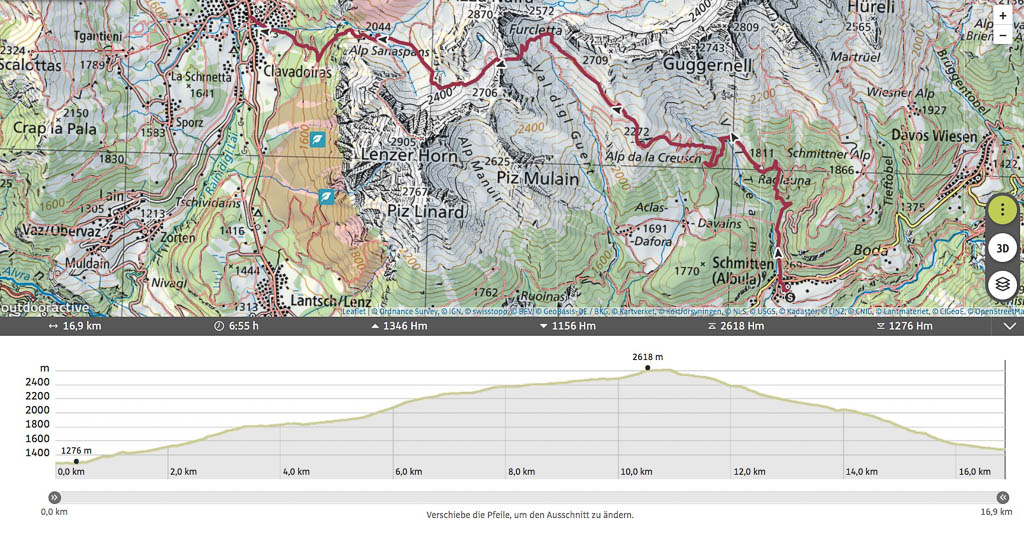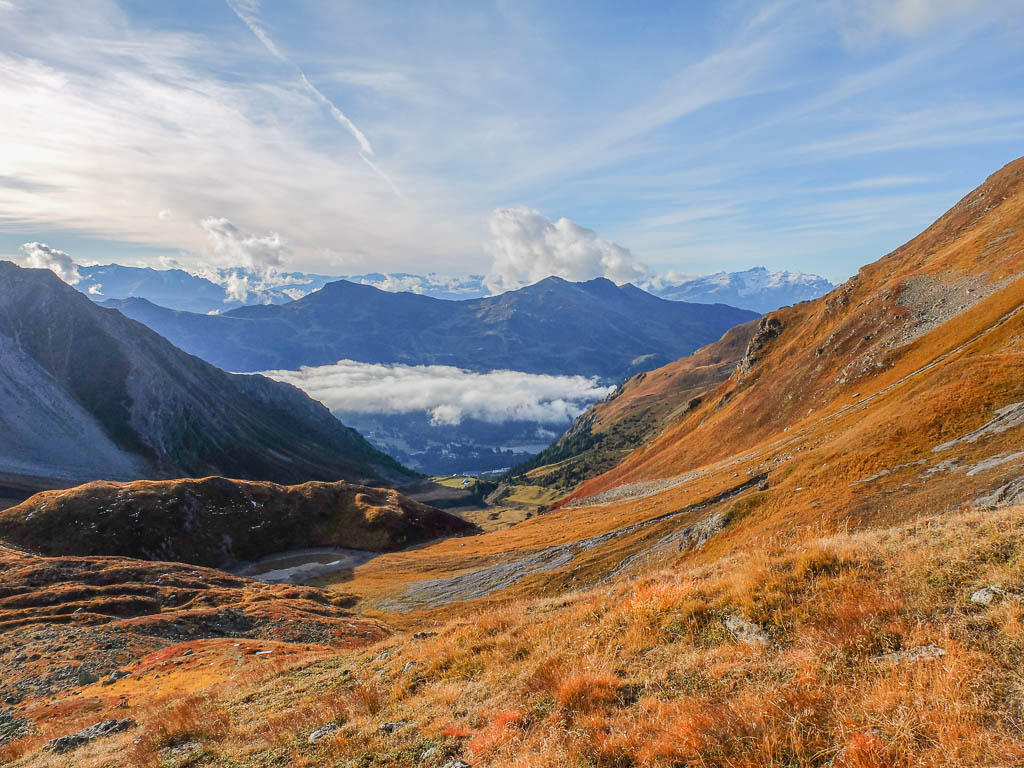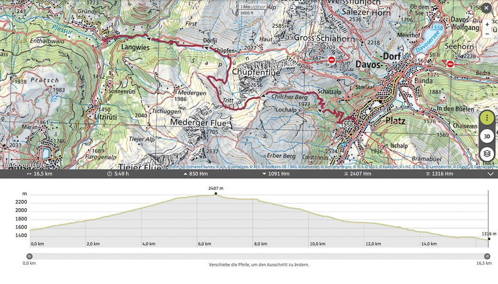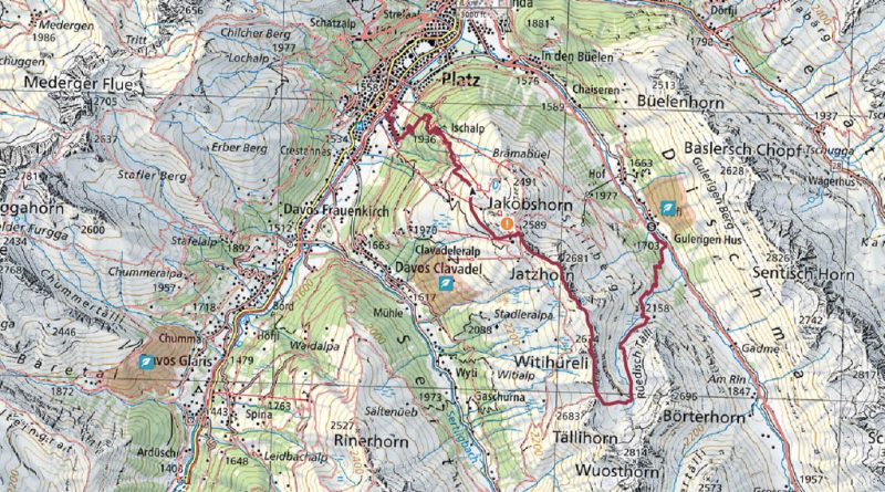 Wir fahren heute mit dem Postbus ins Dischmatal, wandern von Teufi hoch zur Tällifurgga und von dort aus weiter über Witihüreli und Jatzhorn hinunter nach Davos Platz: