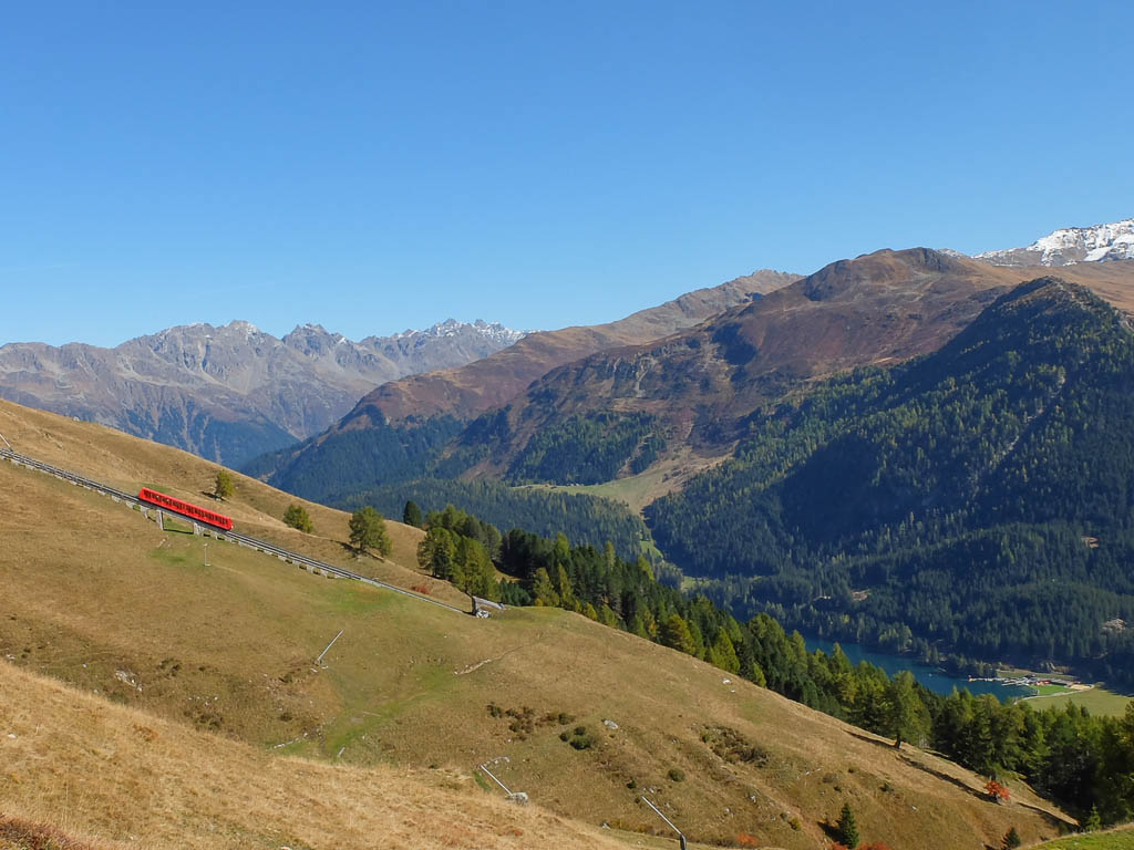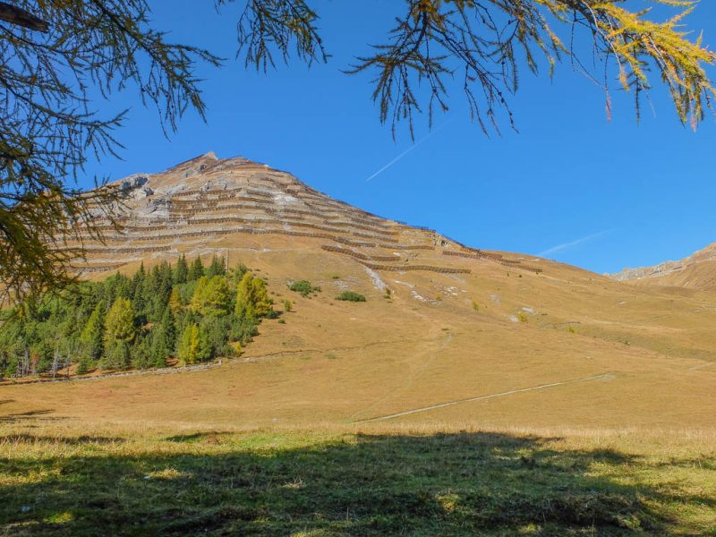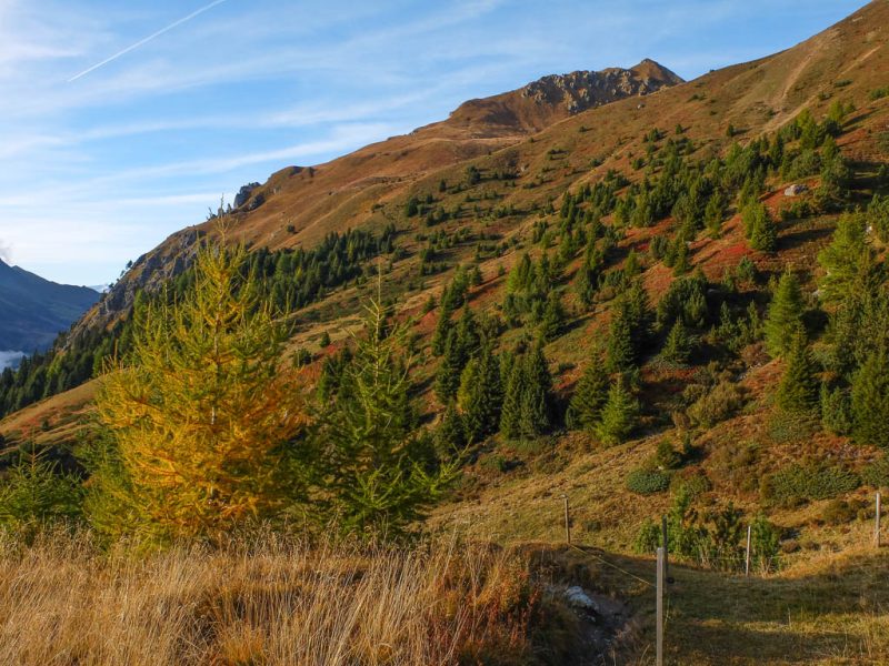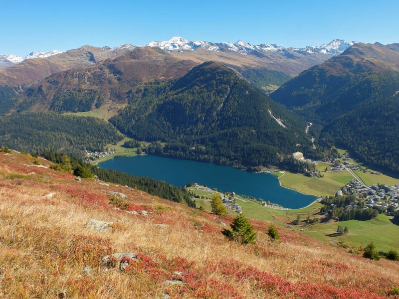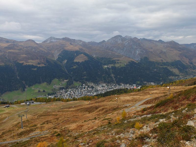 Die Skipisten des Clavadeler Bubbels und des Usser Ischs im Herbstgewand: