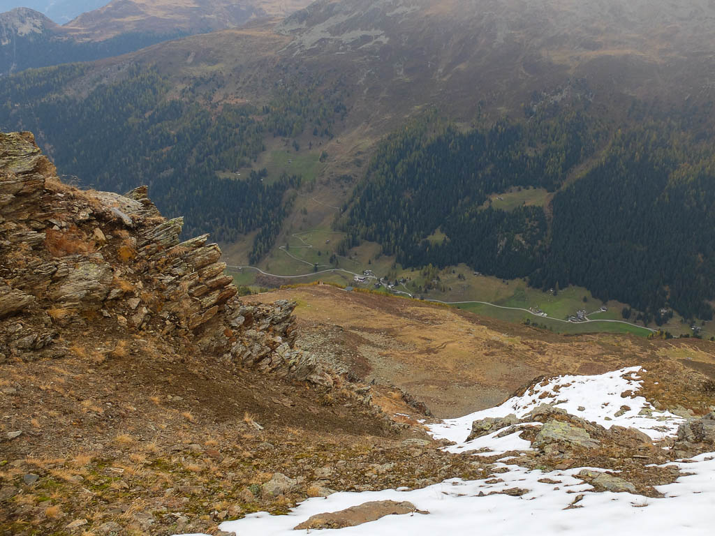 Der Blick vom Grat hinunter auf Teufi, den Ausgangspunkt unserer Tour: