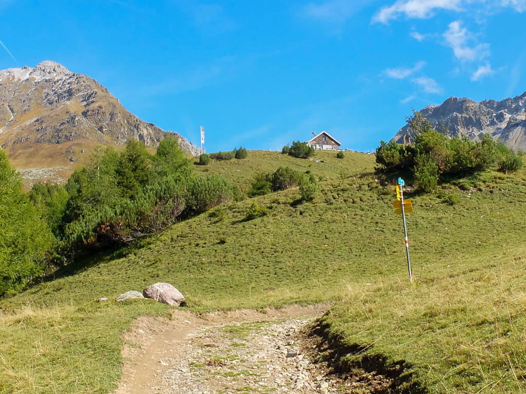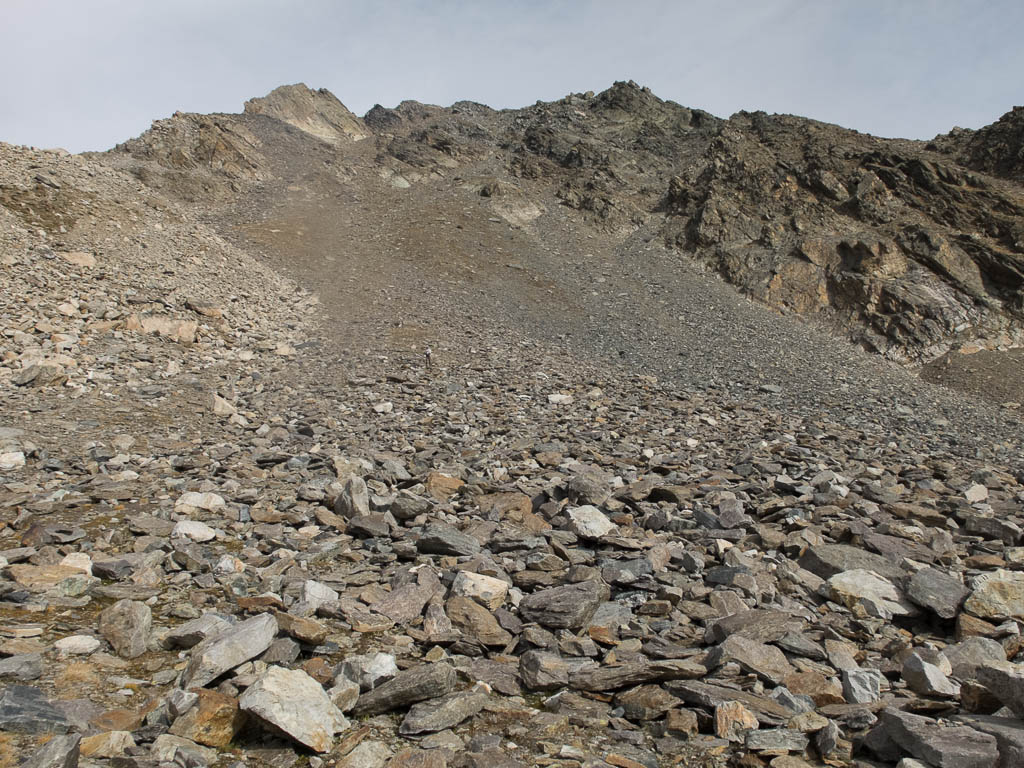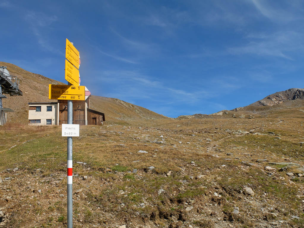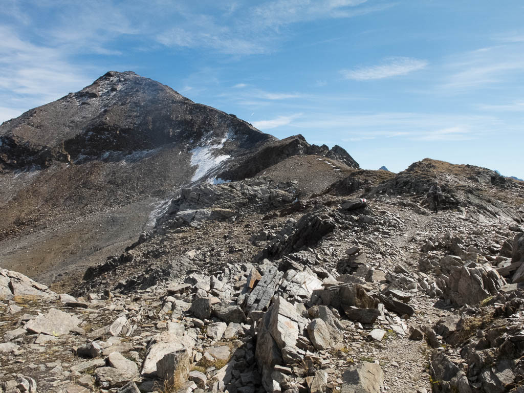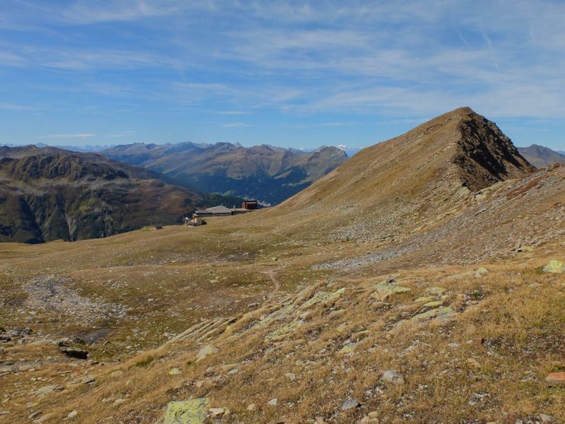 Hier liegt die Fuorcla Albana mit der Hütte und der Vorgipfel des Piz Juliers, der Piz Albana, vor uns: