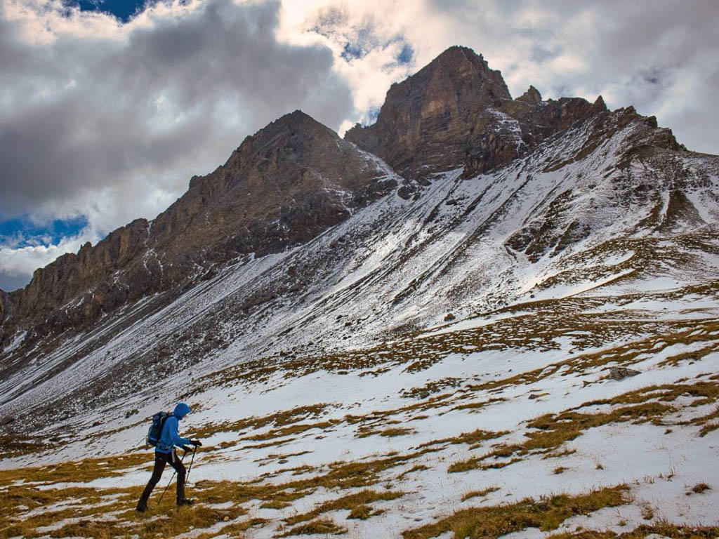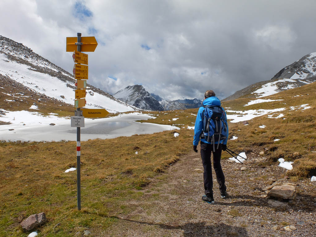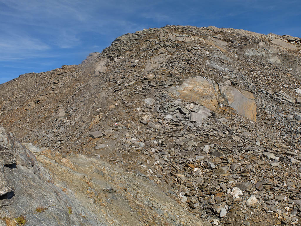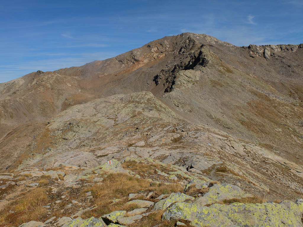 Hier liegt die Fuorcla Albana mit der Hütte und der Vorgipfel des Piz Juliers, der Piz Albana, vor uns: