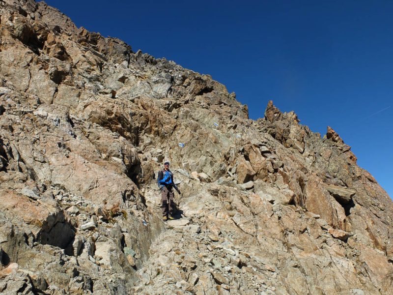 Crasta de la Senda heißt auf deutsch „Grat mit dem Weg“: Der künstlich angelegte Weg zieht sich teils beidseits des Grats, teils über diesen selbst hinweg.