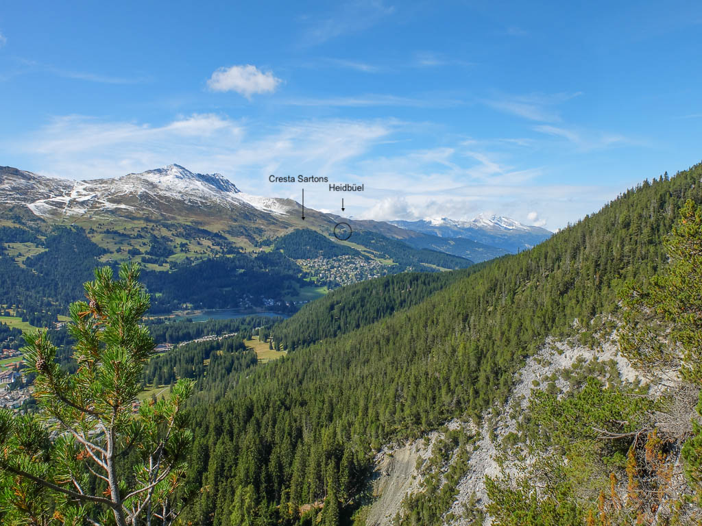 In dieser Richtung liegt auch Schmitten! Richtung Osten blicken wir auf St. Moritz und Pontresina:
