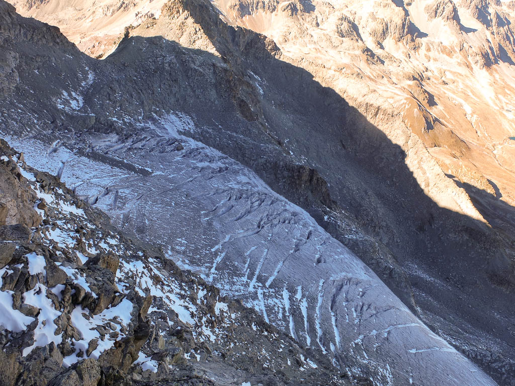 Ein Blick auf den in der Nordflanke liegenden Gletscher „Vadret Güglia“: