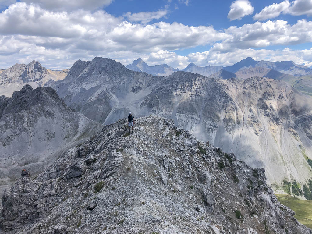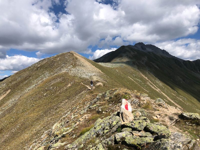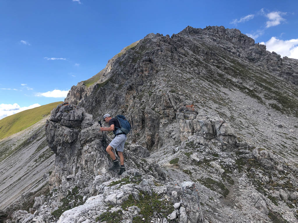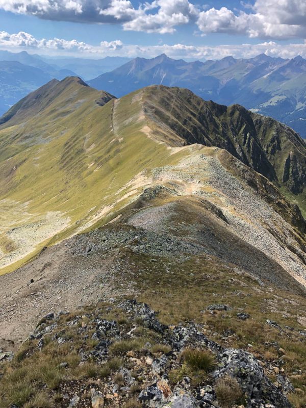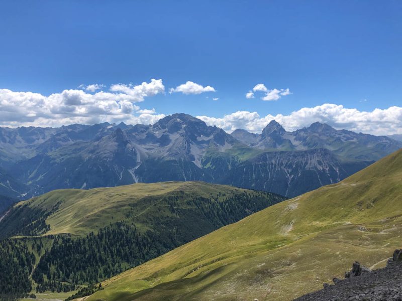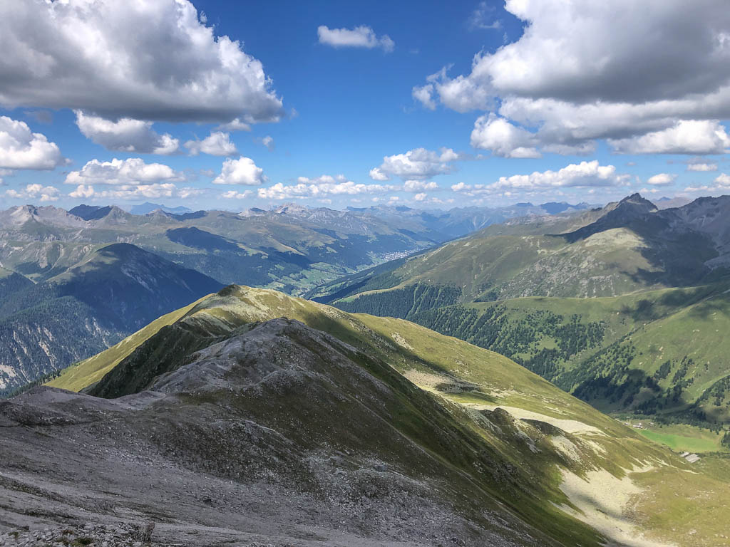 Der Ausgangspunkt der heutigen Tour ist Monstein, das wir mit Postbussen erreichen. Das erste Gipfelziel ist das Büelenhorn, danach wollen wir weiter über den Stulsergrat zum Muchetta. Auf dem Büelenhorn waren wir zum ersten Mal am 9. Juli 2021. Damit es uns nicht langweilig wird, gehen wir heute nicht über den Normalweg hoch, sondern verlassen diesen auf etwa 2400 Höhenmetern und steigen zur Büelenfurgga auf. Im SAC-Führer „Bündner Alpen 6“ steht über den Normalweg: