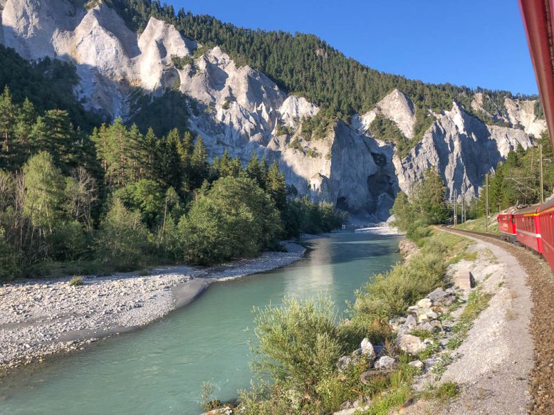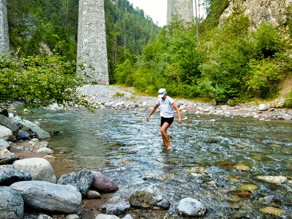 Hier warten wir auf den letzten Bus, der aus dem Tal zurück nach Davos fährt. Bis zur Abfahrt des Busses ist allerdings noch gut eine halbe Stunde Zeit. Um die Wartezeit zu verkürzen, überlegen wir daher, ob wir noch eine Haltestelle weiter laufen sollen. Aber es kommt vollkommen anders als gedacht: Während wir noch überlegen, spricht uns ein Mann, der in einem Wagen mit englischen Nummernschild sitzt, an: Er fragt, ob wir nach Davos mitfahren wollen. Wir sind zuerst ziemlich sprachlos, denn am Steuer des Wagens sitzt ein orthodoxer Jude und neben ihm seine Frau. Bisher waren wir immer davon ausgegangen, dass orthodoxe Juden den Kontakt mit Andersgläubigen meiden. Da haben wir uns aber wohl getäuscht! Nachdem wir unsere Sprache wiedergefunden haben, nehmen wir das Angebot gerne an. Während der Fahrt stellt sich dann heraus, dass er und seine Frau ursprünglich aus Frankfurt kommen. Meine Geburtsstadt Wiesbaden ist ihnen daher bestens bekannt. Zufälle gibt es! Nach einem regen Austausch kommen wir schließlich in Davos an und sagen von Herzen Danke fürs Mitnehmen.