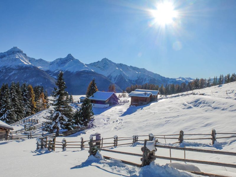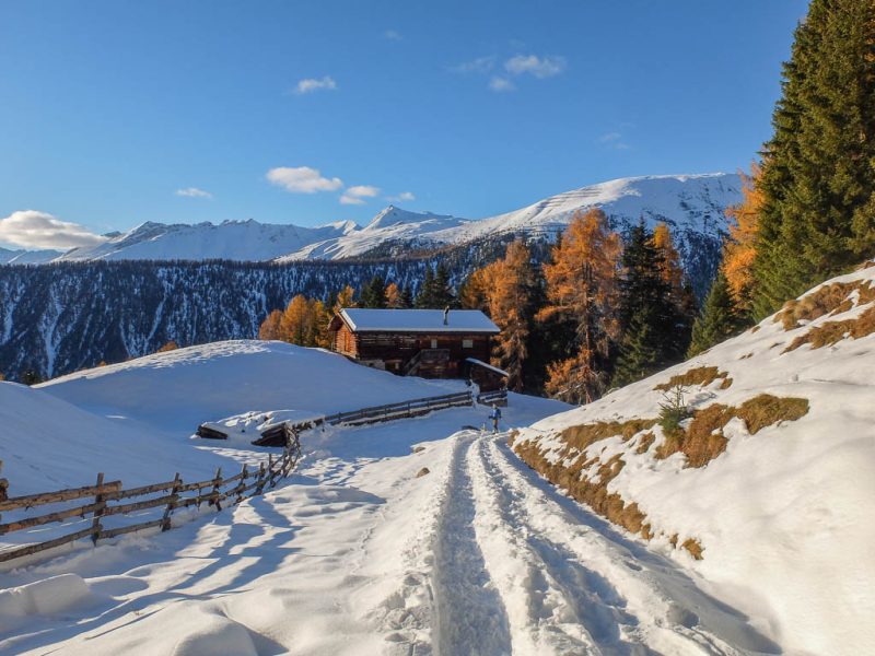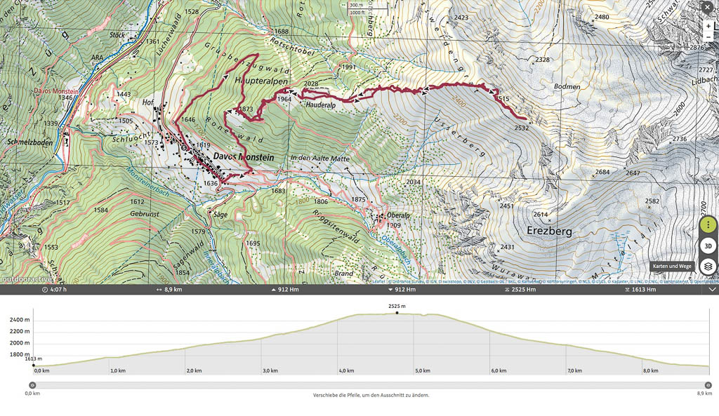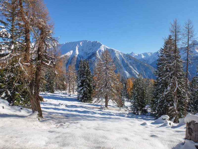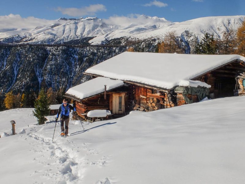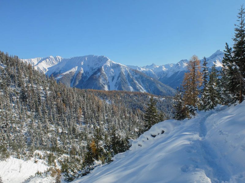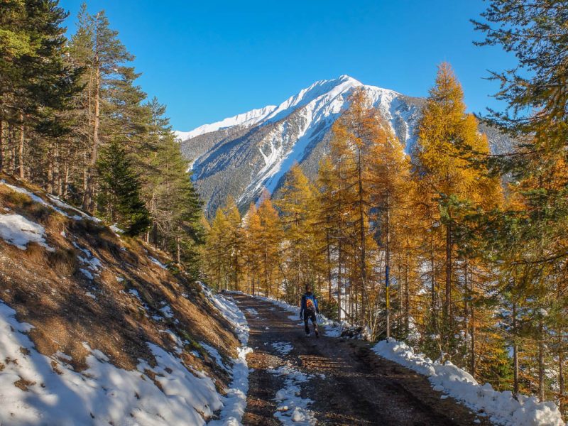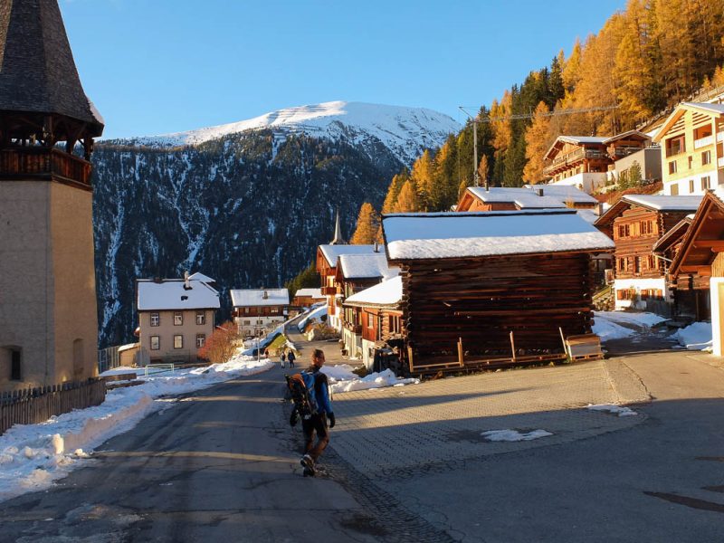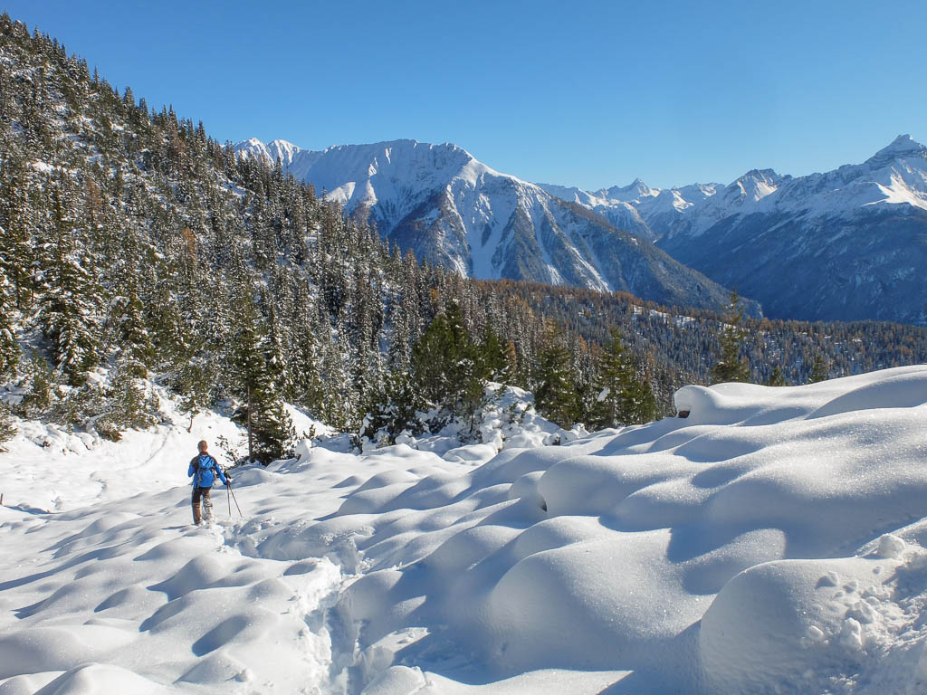 Als Guido um 16 Uhr eine kleinen Spaziergang machen will, mache ich allerdings Schluss mit der Arbeit. Nochmals eine kleine Runde an der frischen Luft zu drehen, ist reizvoller. So klein, ist die Runde, die wir drehen, dann aber gar nicht: Wir steigen über Acla und Raglauna nach Zaplina auf. Auf der gut fünf Kilometer langen Strecke sind über 700 Höhenmeter zu überwinden. Zurück laufen wir über den Fahrweg, der Schmitten und die Schmittner Alp verbindet: