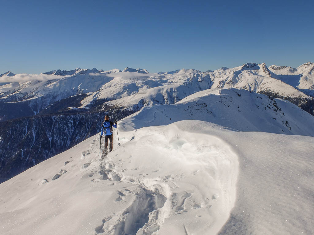 Linker Hand des Weges liegen die beiden Gipfel Stelli und Malakof: