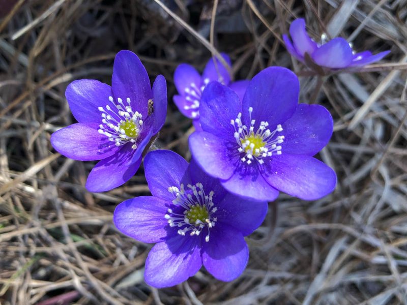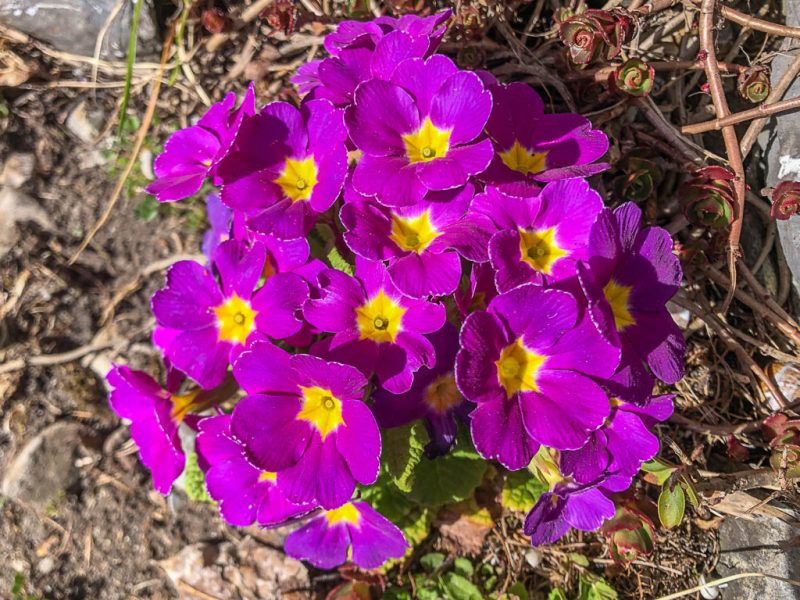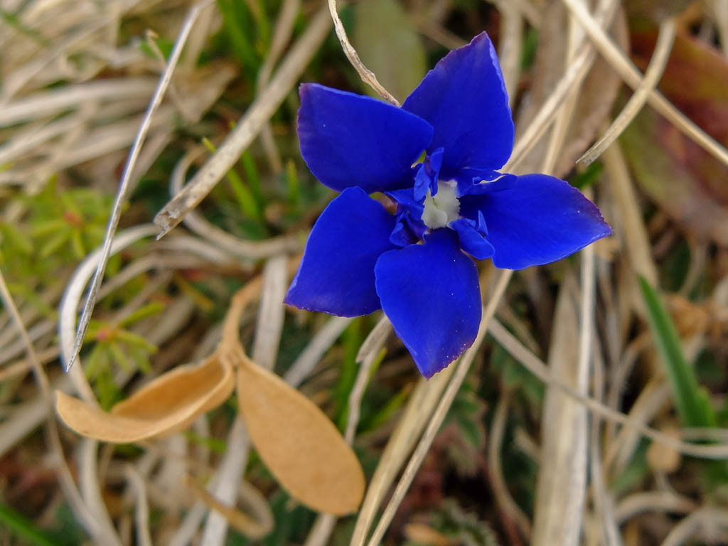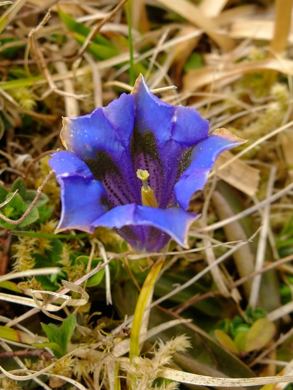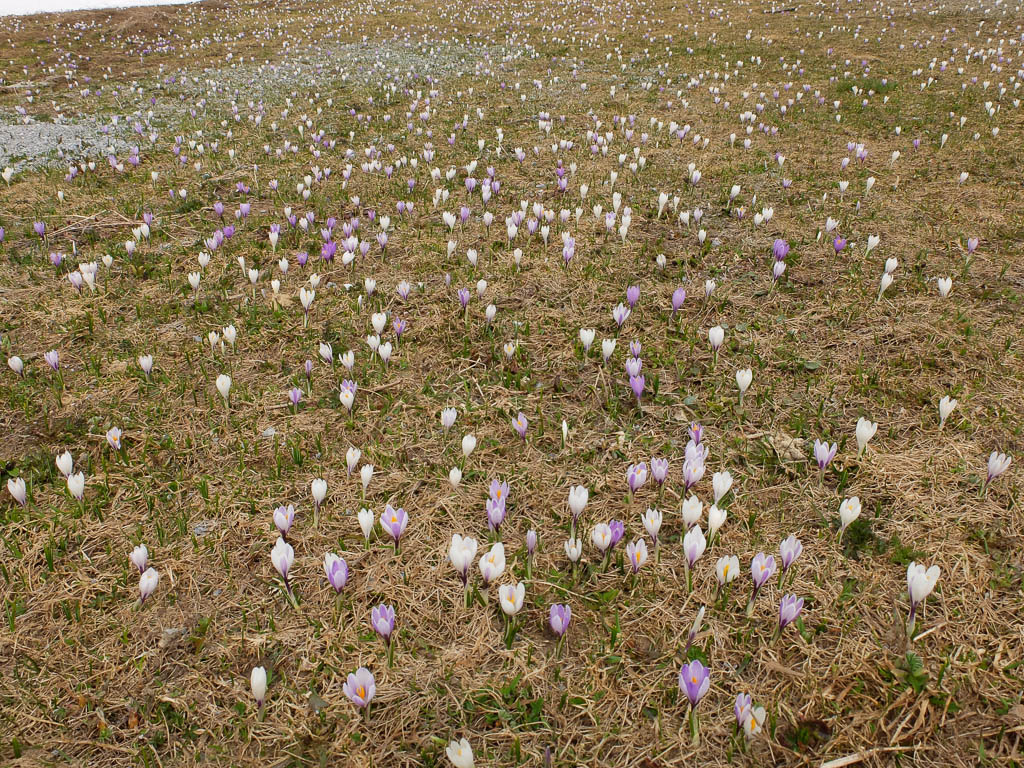 Aber nicht nur der Blick in die Ferne lohnt: Links und rechts des Weges wachsen unzählige Krokusse und wir entdecken die ersten Enziane des Jahres: