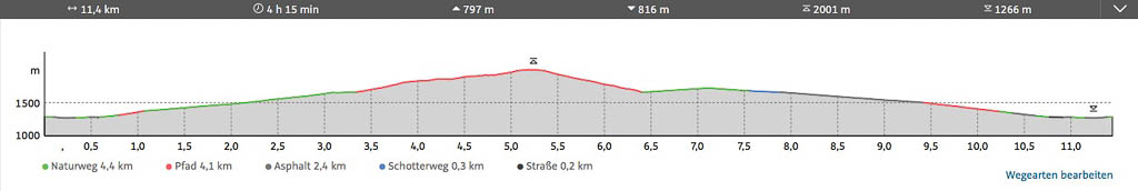 Die Wege liegen außerdem fast vollständig in der Sonne. Die Tour ist daher eher etwas für bewölkte Tage so wie den heutigen. Oder aber als Winter- bzw. Schneeschuhwanderung geeignet. Landschaftlich und aussichtsmäßig ist sie auf jeden Fall zu empfehlen.