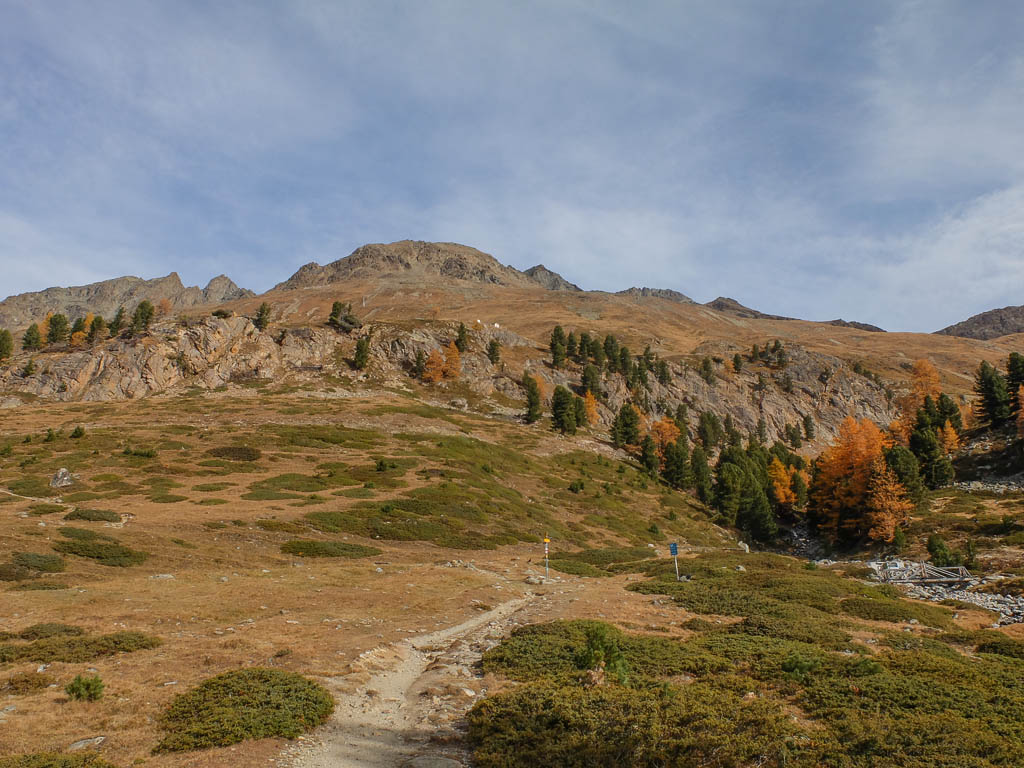 Dieser 3000er ist über einen einfachen, weiß-rot-weiß markierten Wanderweg zu erreichen. Da wir wie so oft erst spät am Tag starten, ist er perfekt für eine nachmittägliche Besteigung geeignet, bei der man nicht erst groß nach dem Weg suchen muss. Startpunkt der Tour ist der Bahnhof von Pontresina. Von dort aus bis zum Gipfel sind gut 1500 Höhenmeter zu überwinden. In den Sommermonaten kann man sich den Aufstieg wesentlich erleichtern, indem man mit dem Sessellift zur Alp Languard hinauffährt. Mit Beginn dieser Woche hat die Bahn den Betrieb jedoch eingestellt, so wir das Vergnügen haben, die 1500 Höhenmeter aus eigener Kraft zurücklegen zu dürfen.