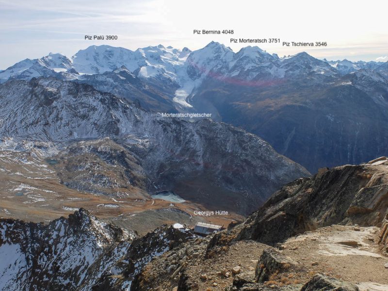 Im Süden wird die Sache schon einfacher, denn da liegt die Berninagruppe mit Morteratschgletscher: