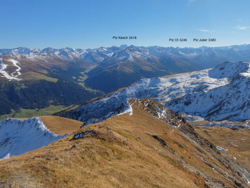 Noch ein Stückchen weiter nördlich tauchen Piz Üertsch und Piz Kesch auf: