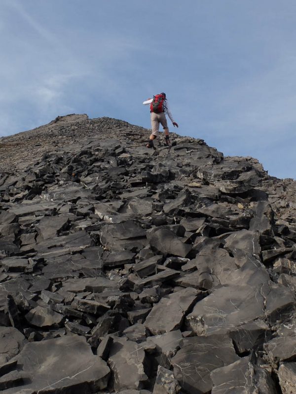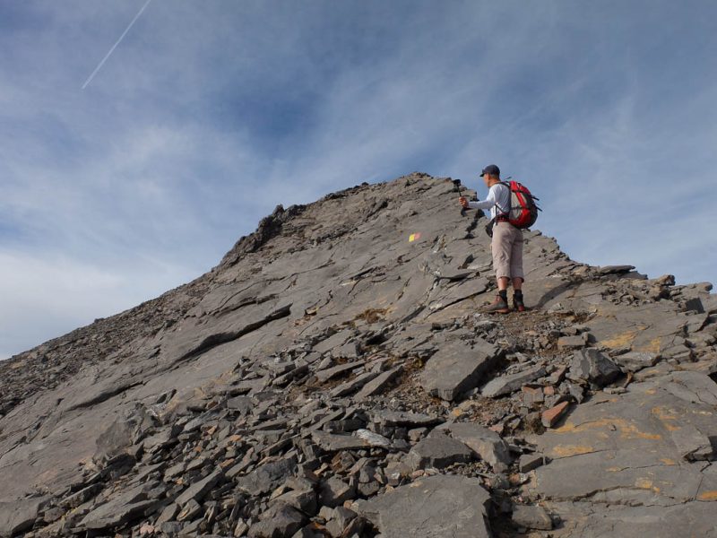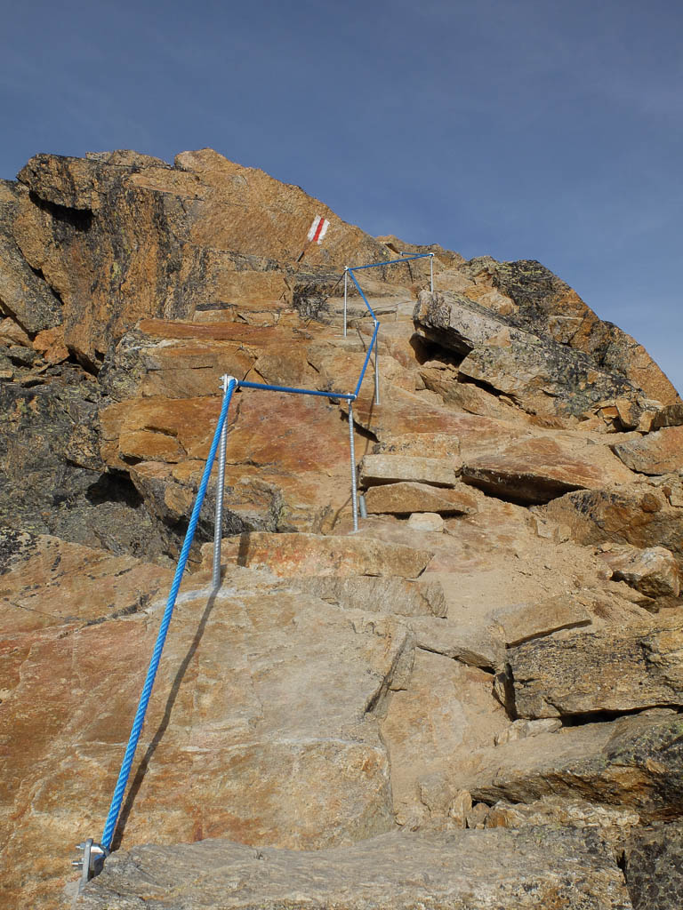 Die letzten Meter hinauf zum Gipfel sind streckenweise mit Seilen gesichert: