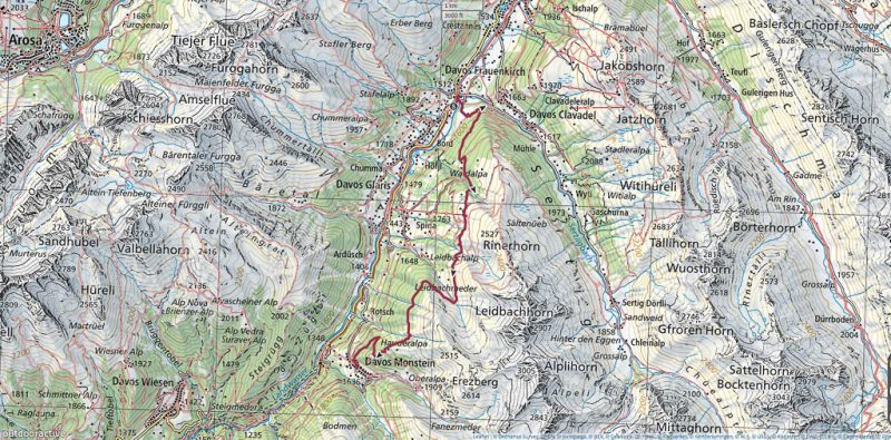 Hier schaffen wir es tatsächlich, zum zweiten Mal an diesem Tag in die falsche Richtung zu laufen. Aber wir bemerken den Fehler wie beim ersten Mal recht schnell, so dass der Schaden sich in Grenzen hält: Nach 4 Stunden und 44 Minuten sind wir wieder zurück am Bahnhof von Pontresina und können wie gewünscht um 17.02 Uhr die Heimreise antreten. Die Tour in der Übersicht: