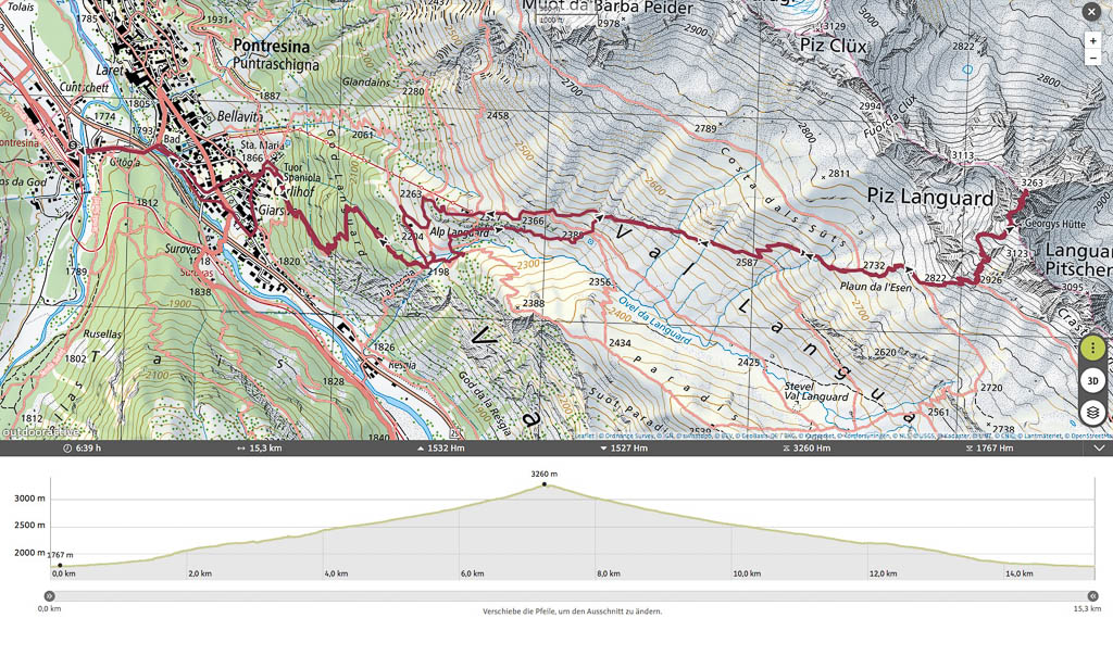 PS: Guidos Tourenbeschreibung, einschließlich einer interaktiven Karte und einem Video: Pontresina → Piz Languard.