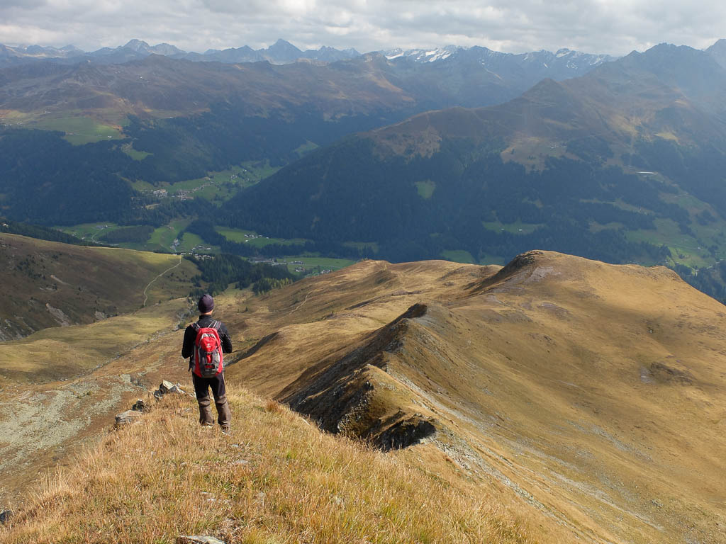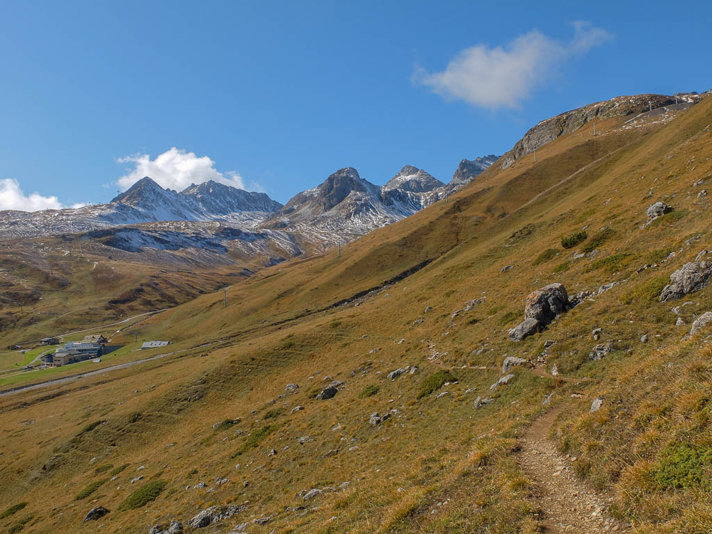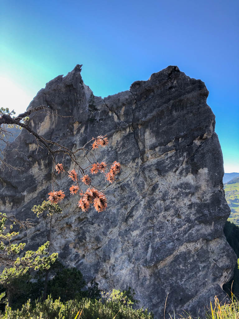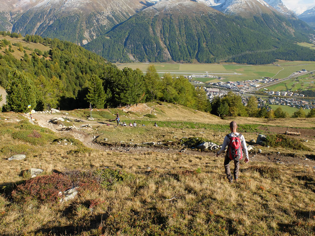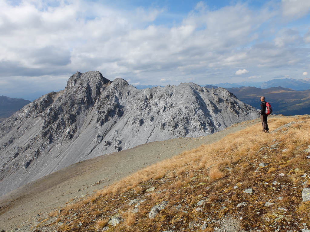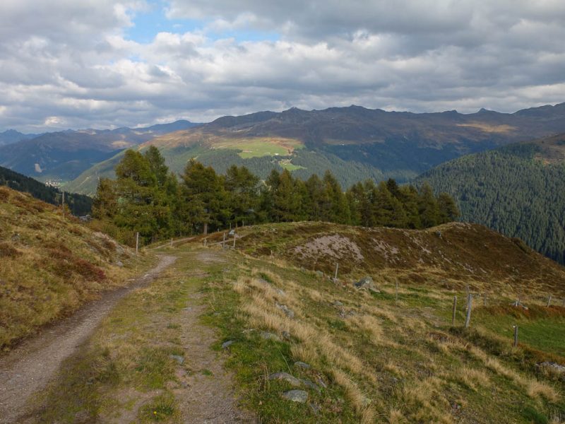 Der Abstieg vom Urdenfürggli nach Lenzerheide ist durch zahlreiche Downhillabfahrten für Biker ziemlich verschandelt. Trotzdem können wir ihn in der Sonne gehend genießen.