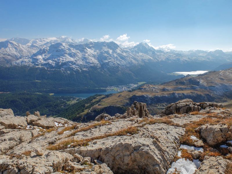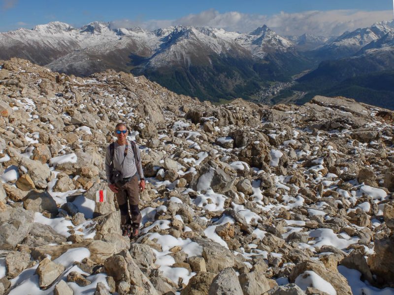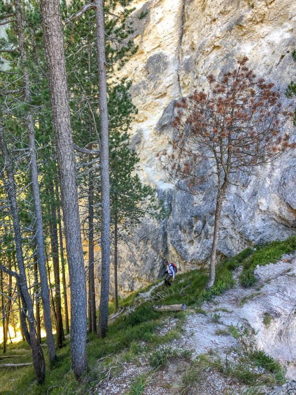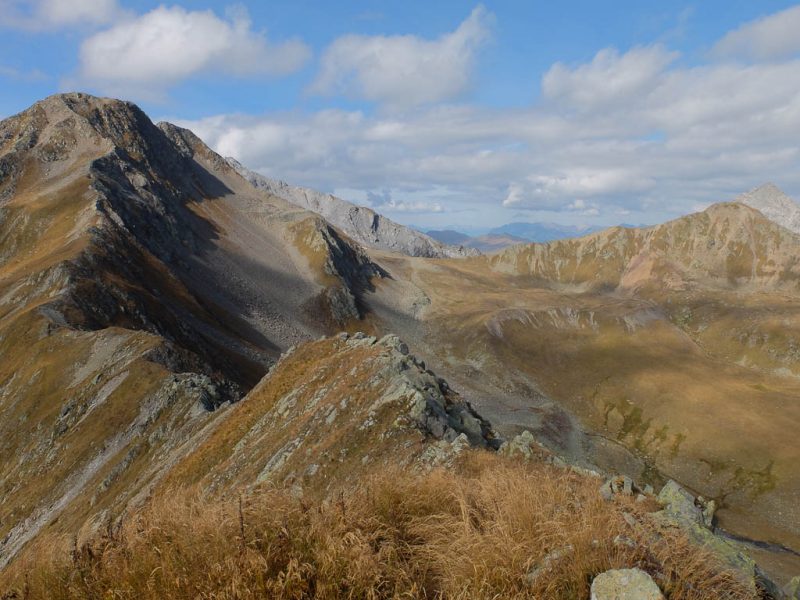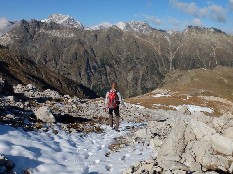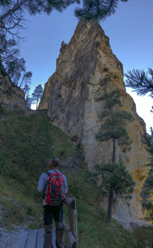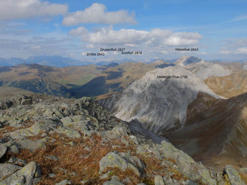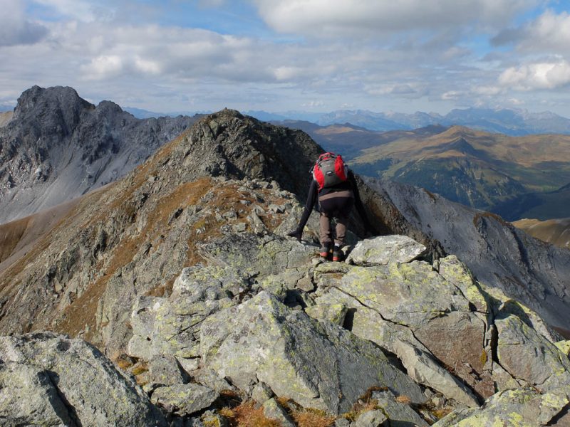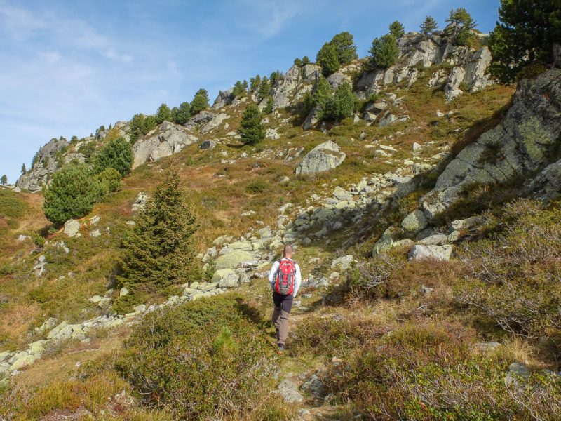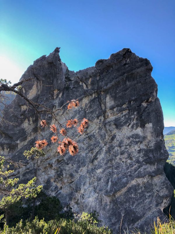 Der Abstieg vom Urdenfürggli nach Lenzerheide ist durch zahlreiche Downhillabfahrten für Biker ziemlich verschandelt. Trotzdem können wir ihn in der Sonne gehend genießen.