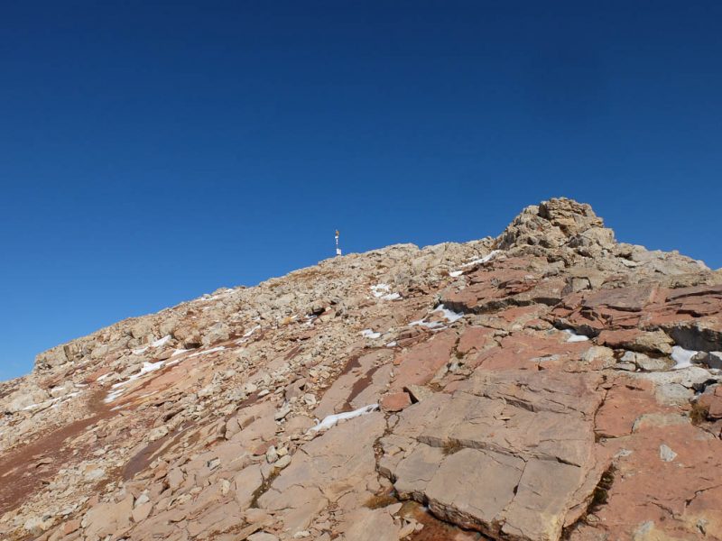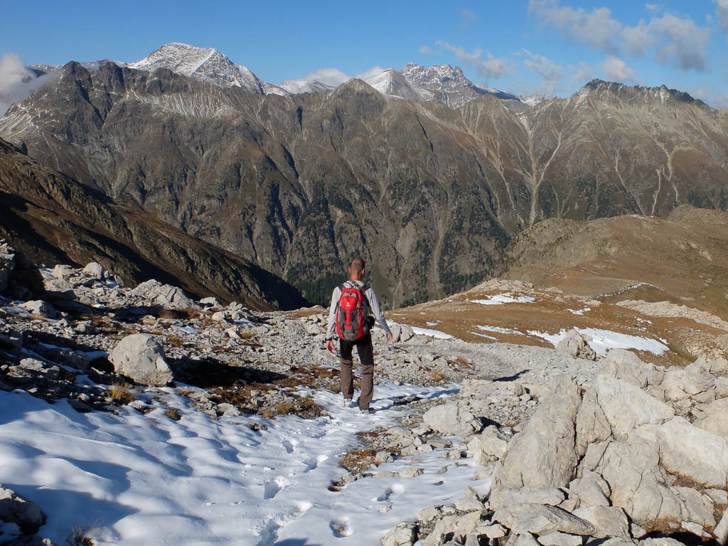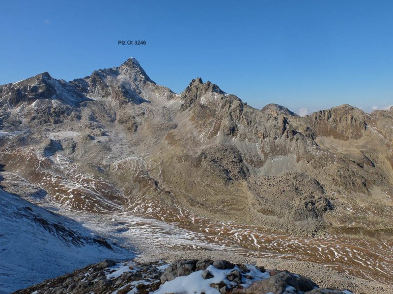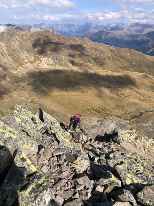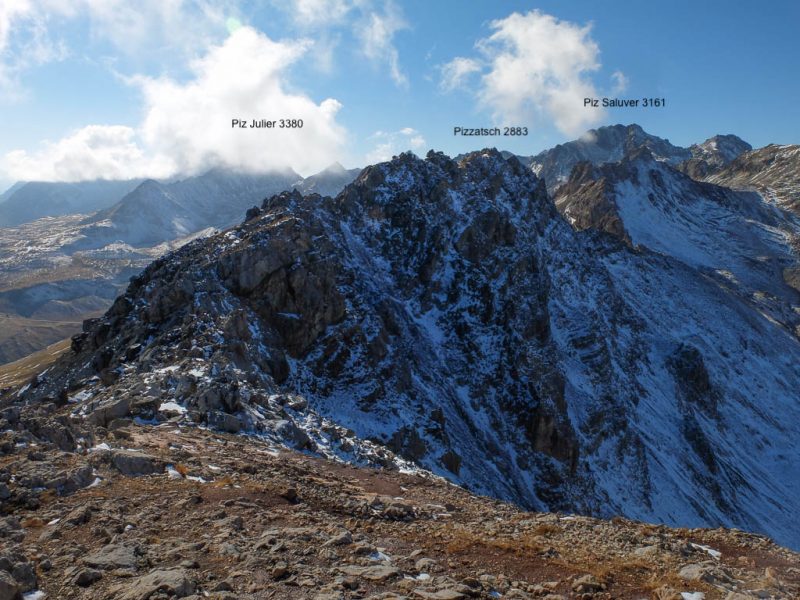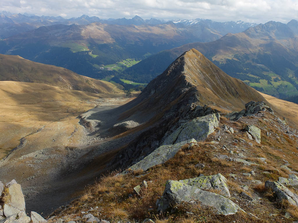 Der Blick während des Abstiegs Richtung Nordwesten auf den Ringelspitz:
