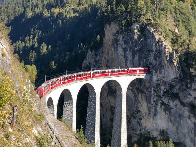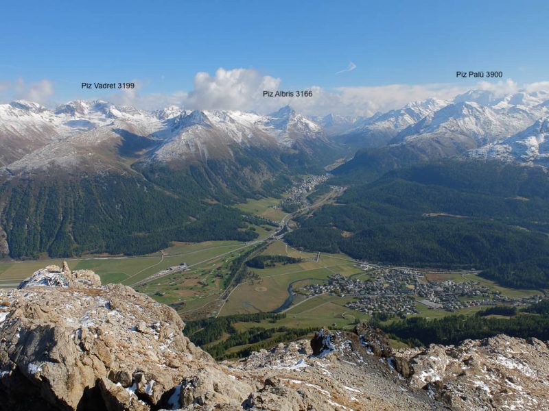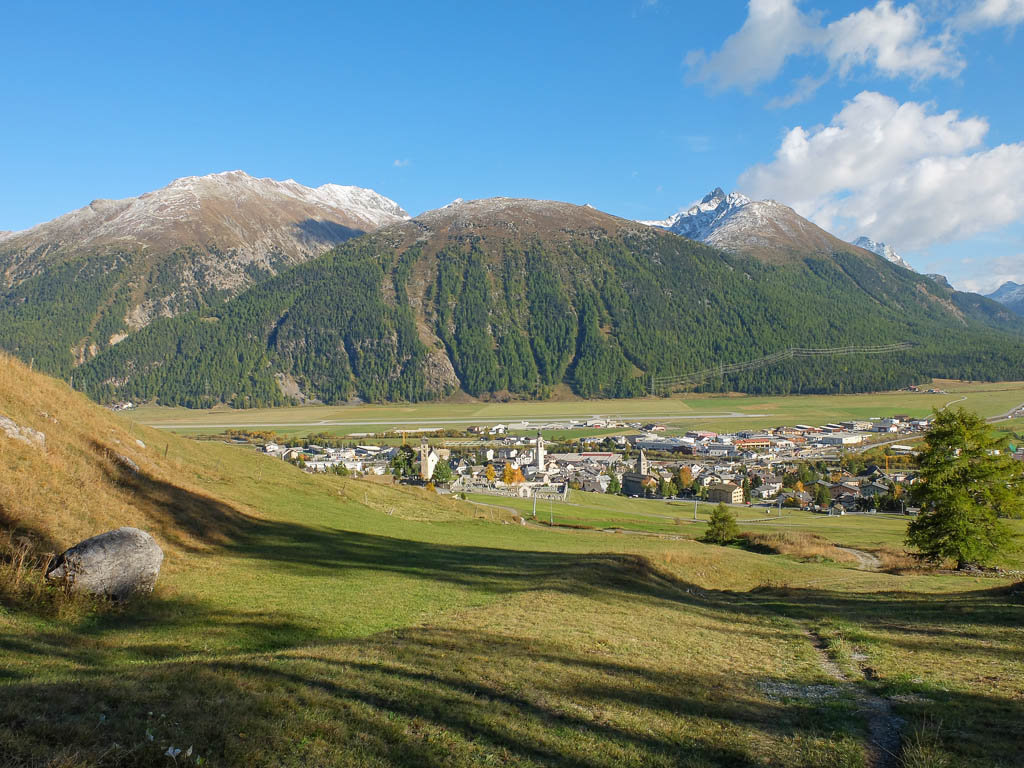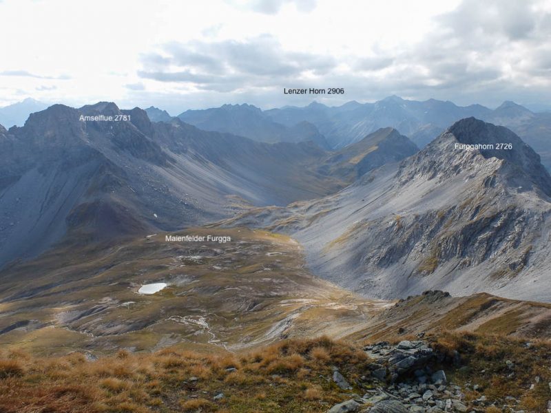 Den Ausgangspunkt unserer heutigen Wanderung, das Dorf Tschiertschen, erreichen wir nach fast zweistündiger Fahrt mit zwei Postbuslinien. Tchiertschen liegt auf der linken, südlichen Talseite des Schanfiggs, das Chur und Arosa miteinander verbindet. Umsteigehaltestelle ist Chur, Araschgerrang, mit Blick auf Chur: