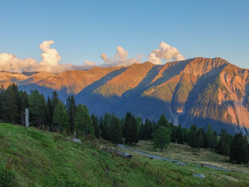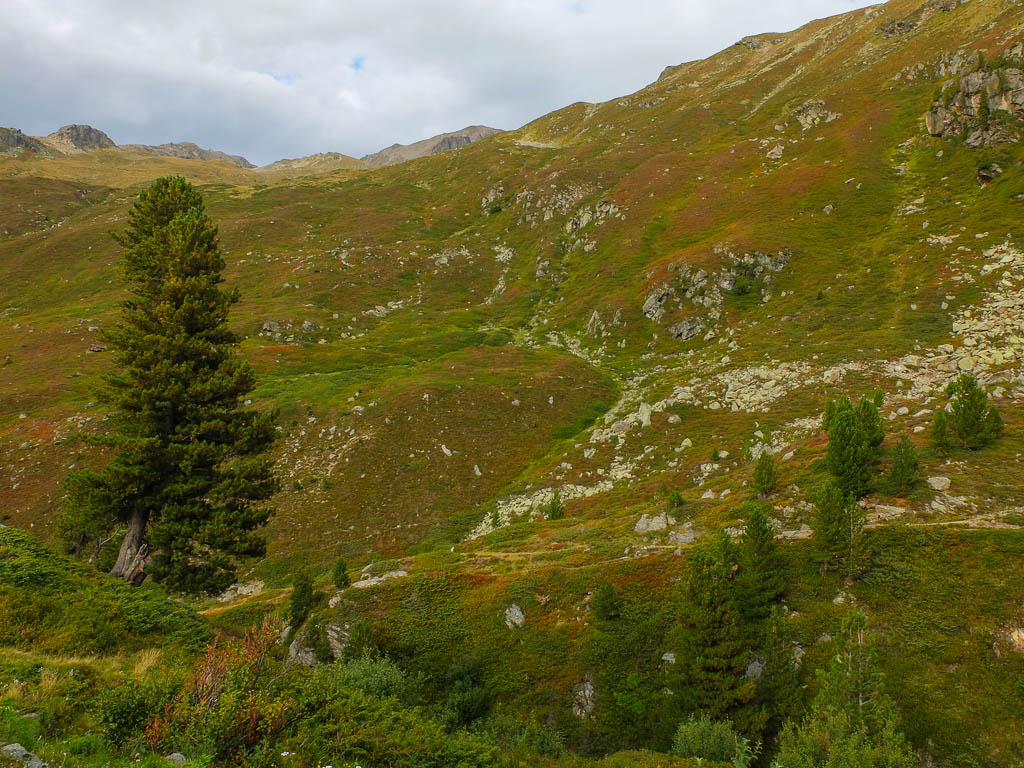 Alles hat ein Ende, auch die allerschönste Wanderung. Wir können das Ende allerdings noch ein wenig hinausschieben, da uns beim Erreichen der Bushaltestelle „Wägerhus“ eine Wartezeit von eineinhalb Stunden bis zur Abfahrt des Busses bleibt. Statt die Zeit sitzend zu verbringen, wandern wir durch das Flüelatal hinunter nach Tschuggen, der nächsten Haltestelle. Es ist ein wunderbarer Ausklang dieser farbenprächtigen Tour: