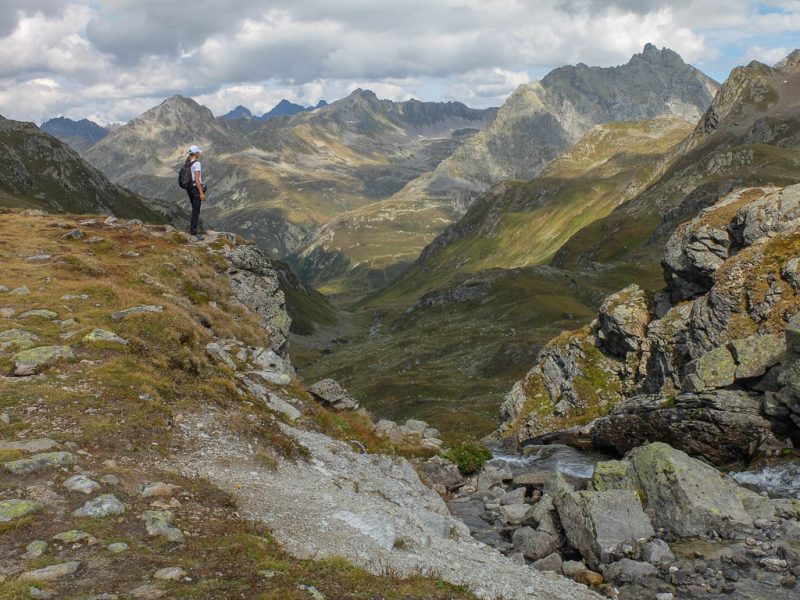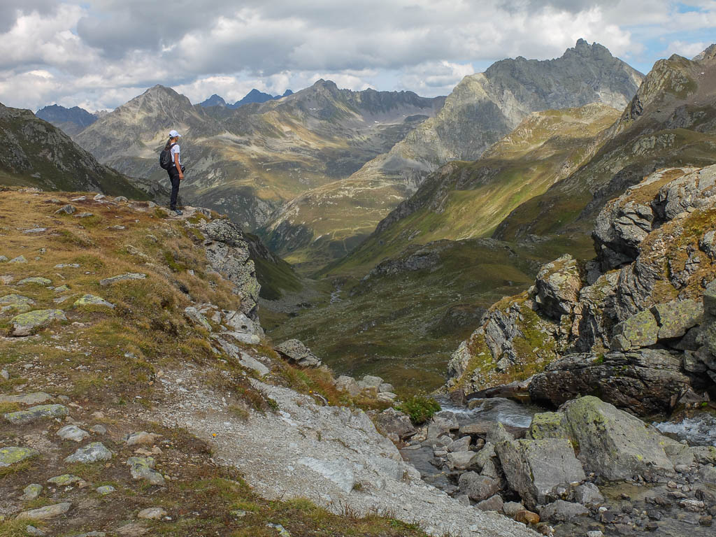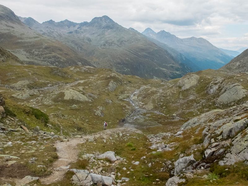 Das Wasser des großen Jörisees stürzt hier als Jöribach hinunter bis nach Vereina. Ein Blick zurück während des Aufstiegs zur Jöriflüelafurgga: