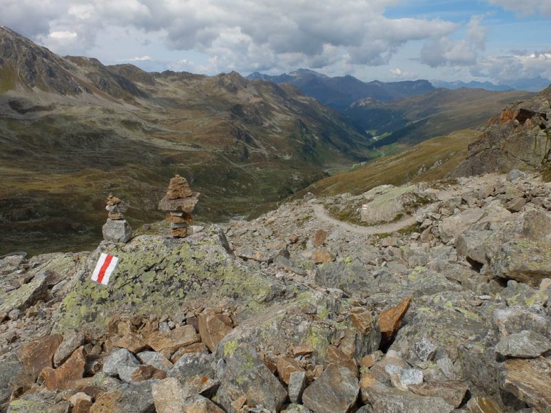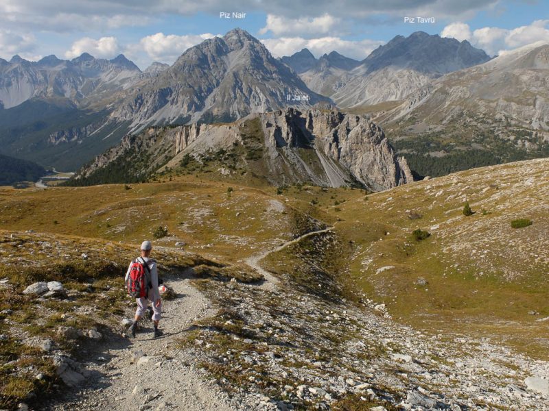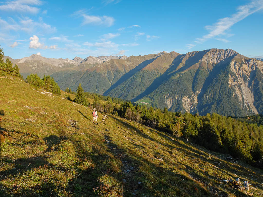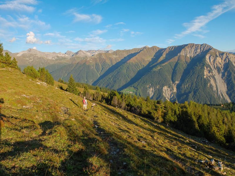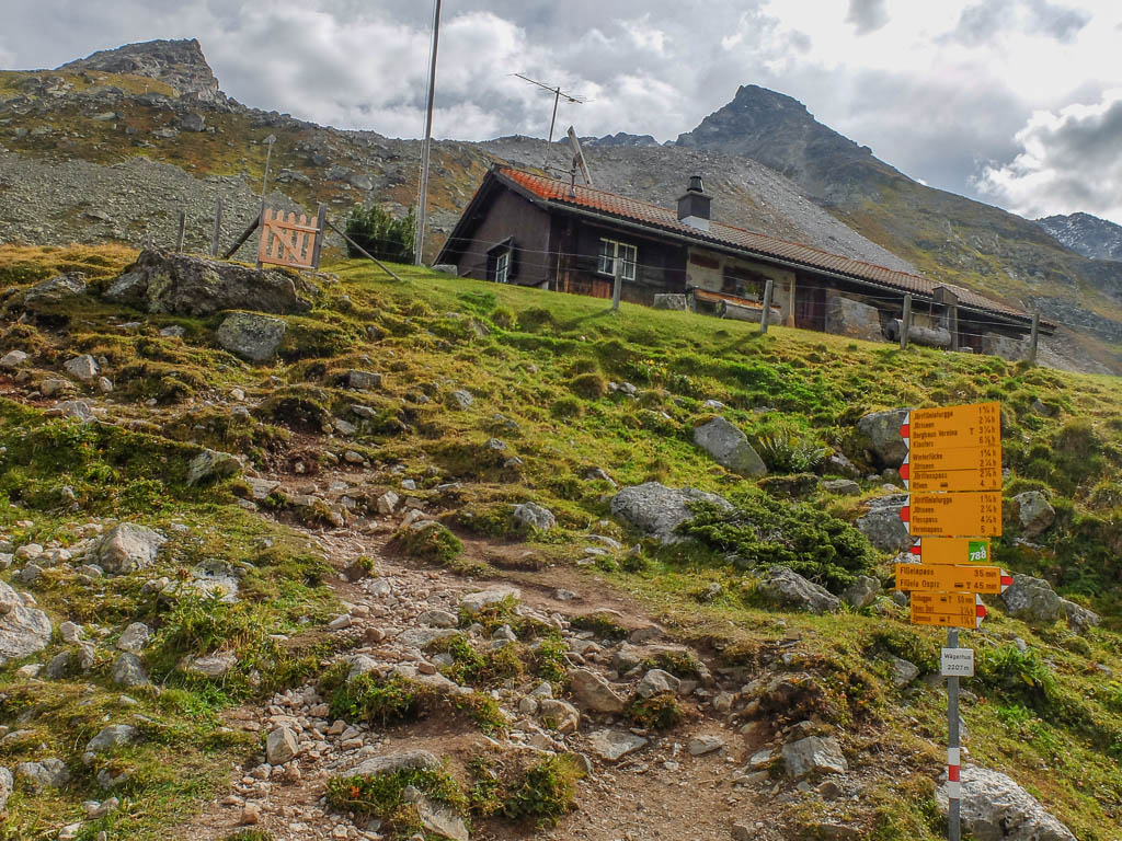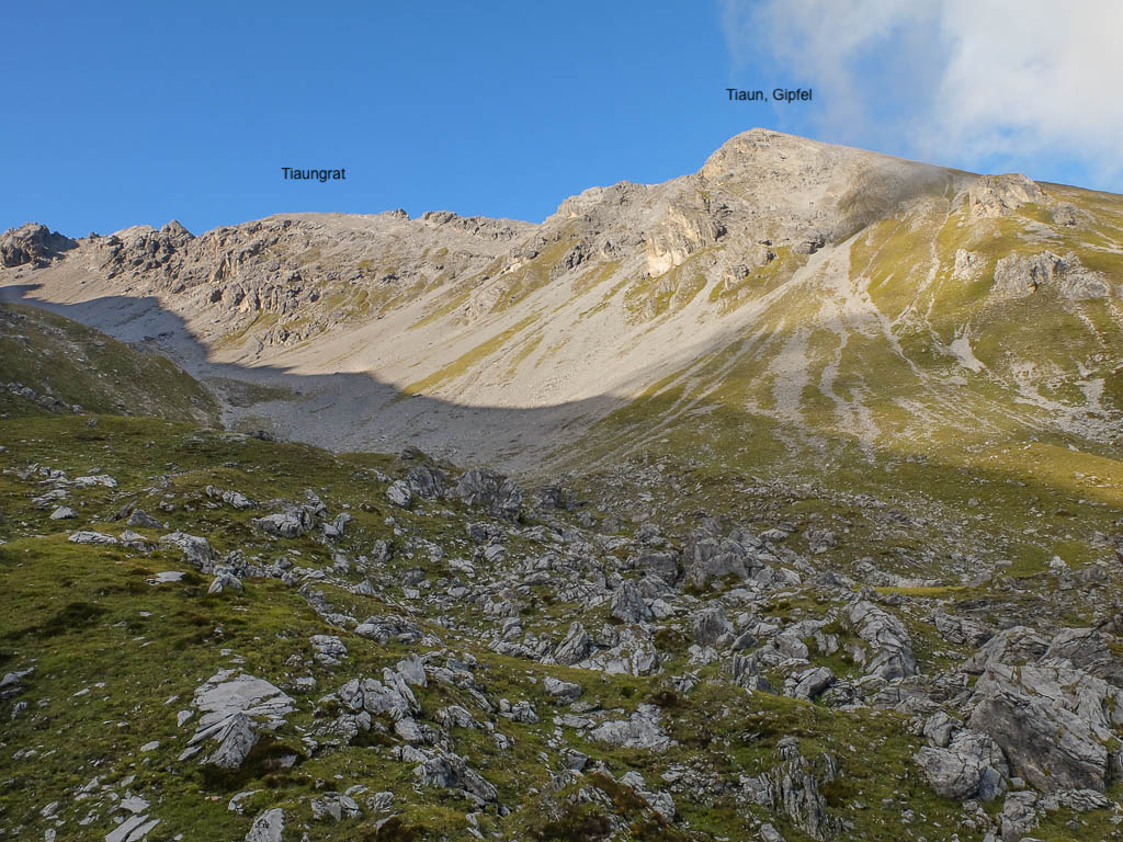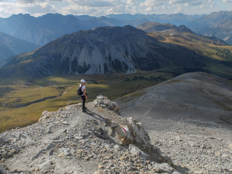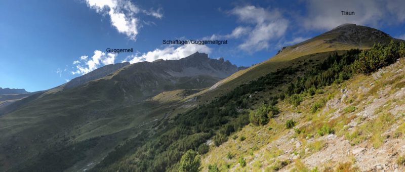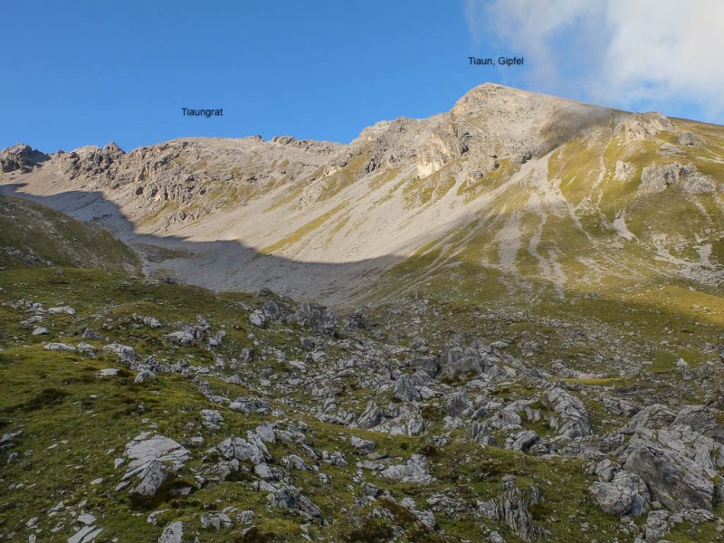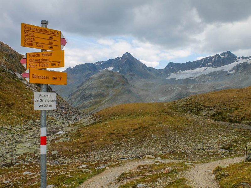 Von dort aus steigen wir eine halbe Stunde und knapp 150 Höhenmeter hinauf bis zu einer Weggabelung und halten uns dann rechts Richtung „Winterlücke“. Es ist eine Bauchentscheidung, die meisten anderen Wanderer steigen – zumindest heute – in Richtung „Jöriflüelafurgga“ auf. Schon jetzt gefällt mir die Wanderung ausgesprochen gut, es geht nämlich über sehr felsiges Gelände nach oben: