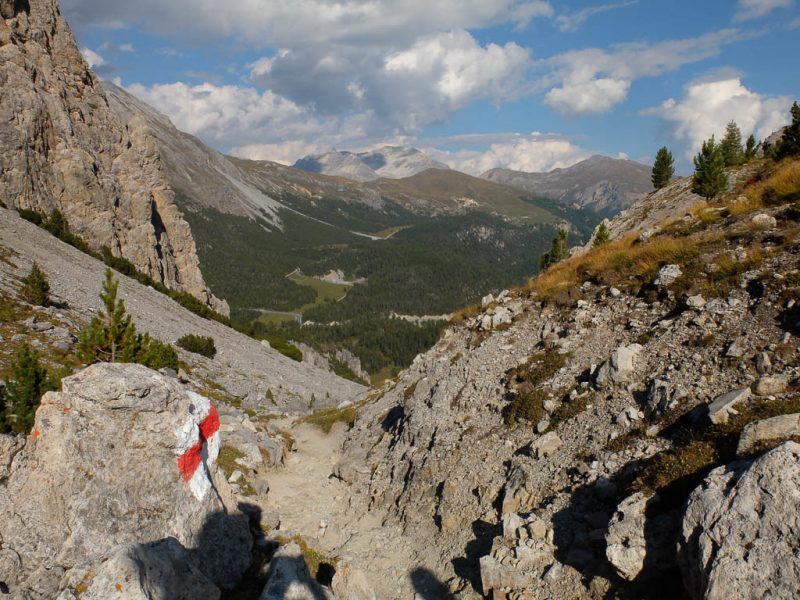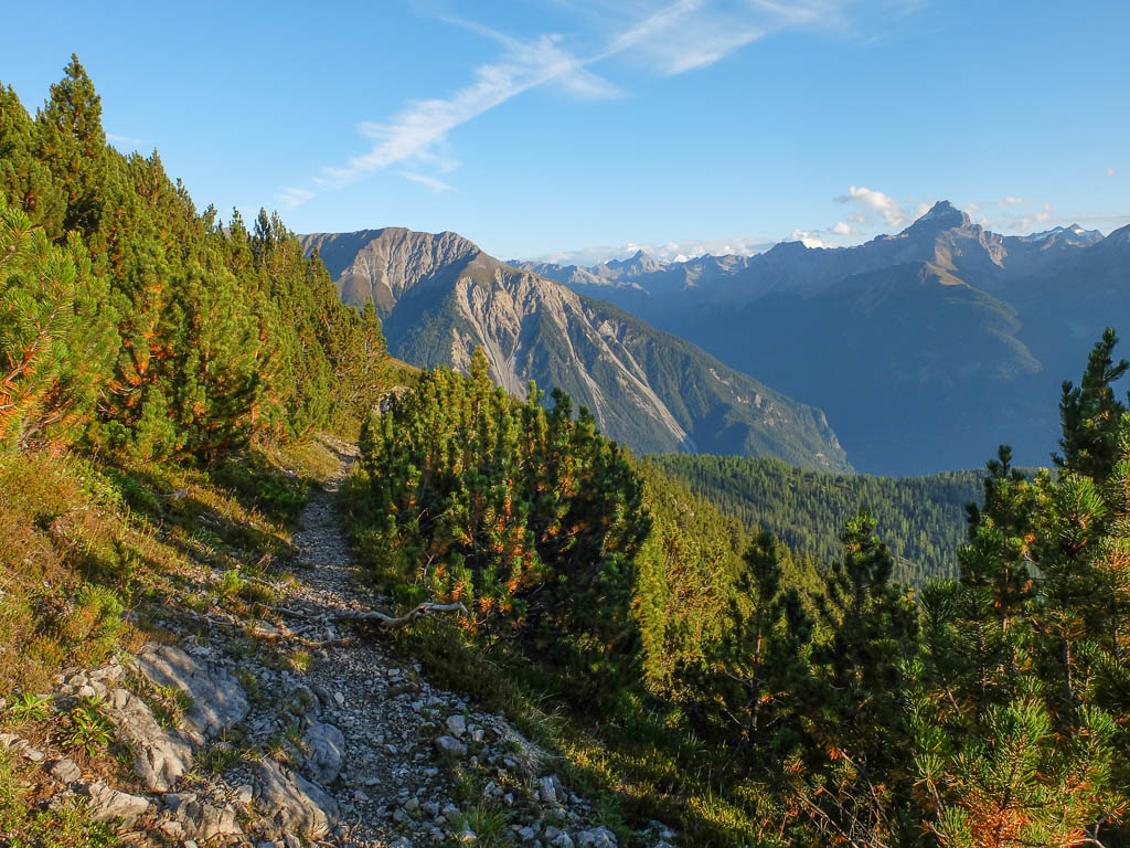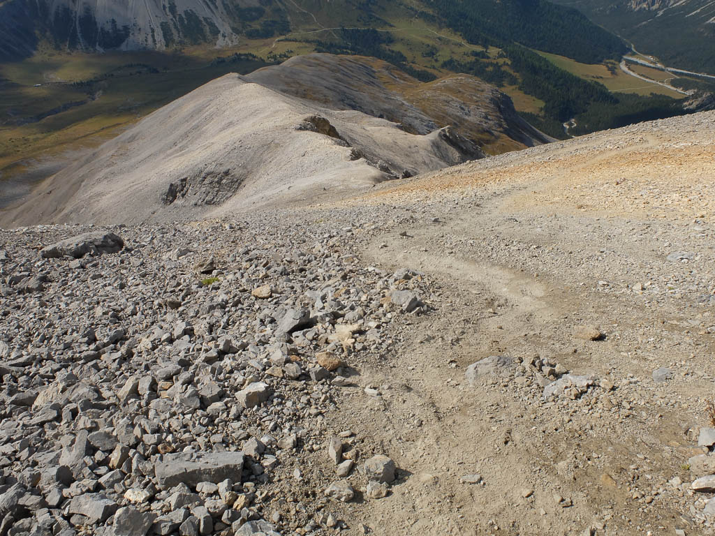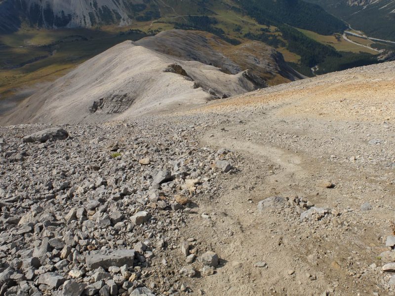 Der nach unten führende Wanderweg, rechts davon liegt der ehemalige Gletscherfuß:
