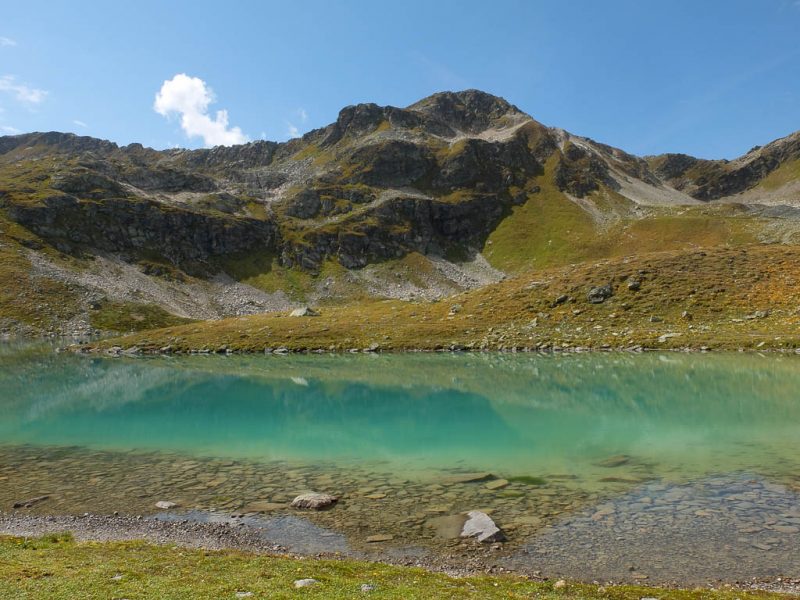 Der kleine Nachbar des großen Jörisees schimmert türkis: