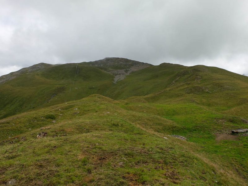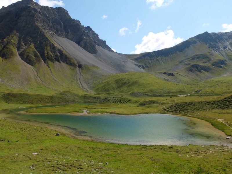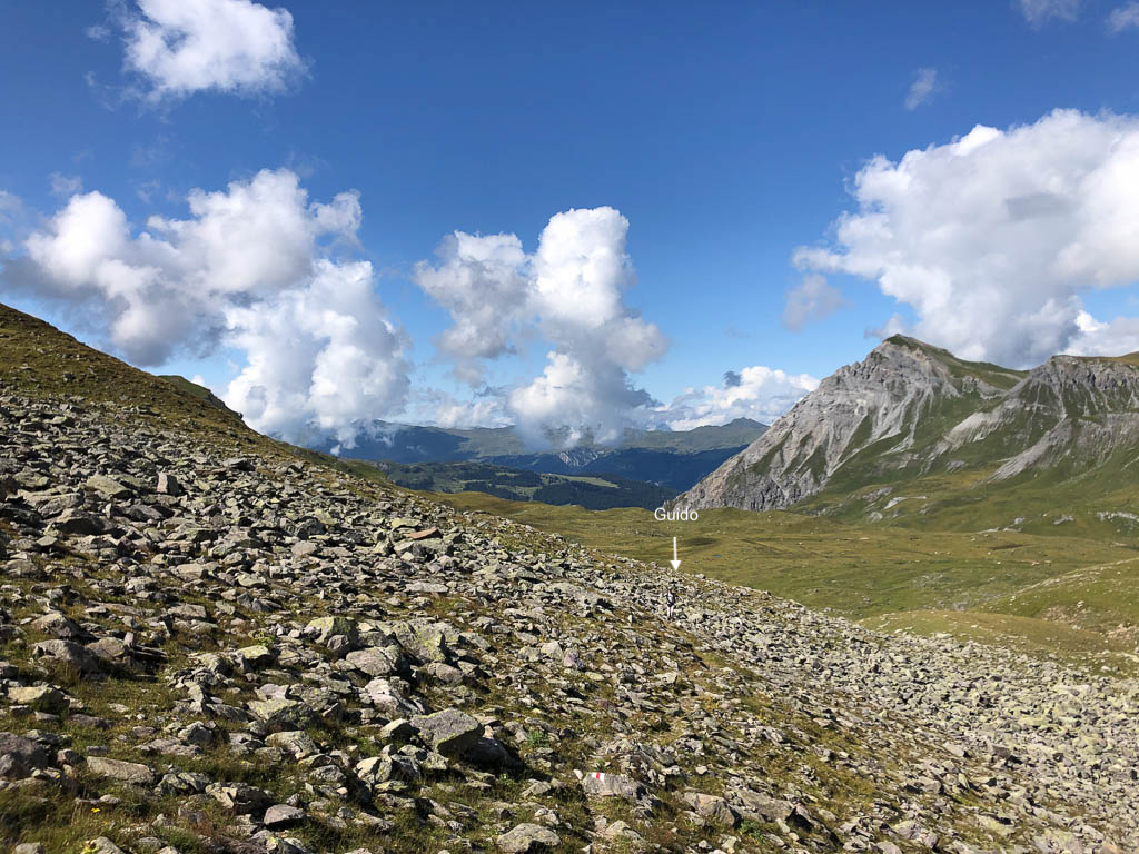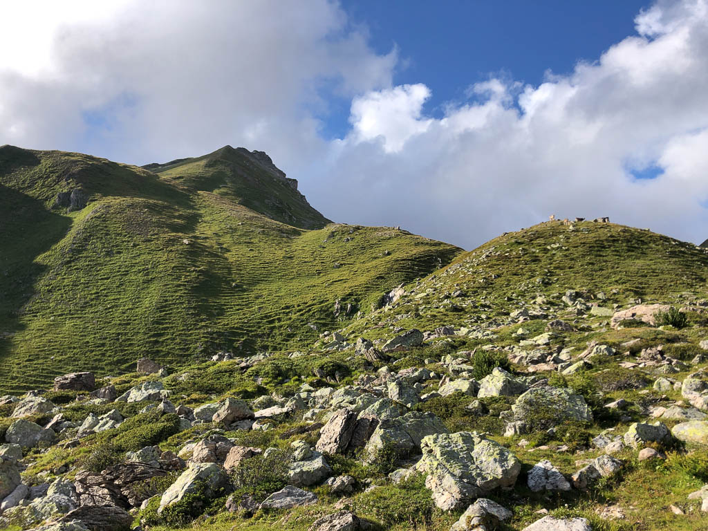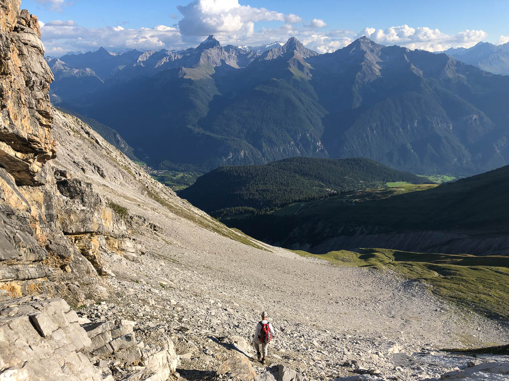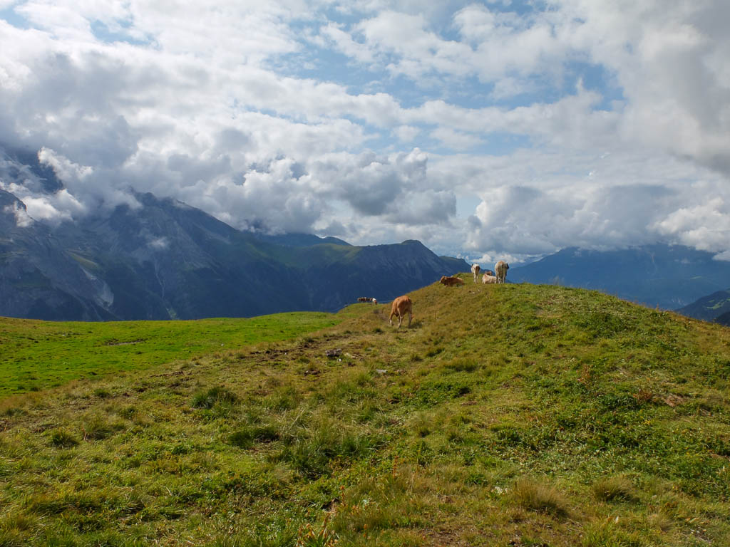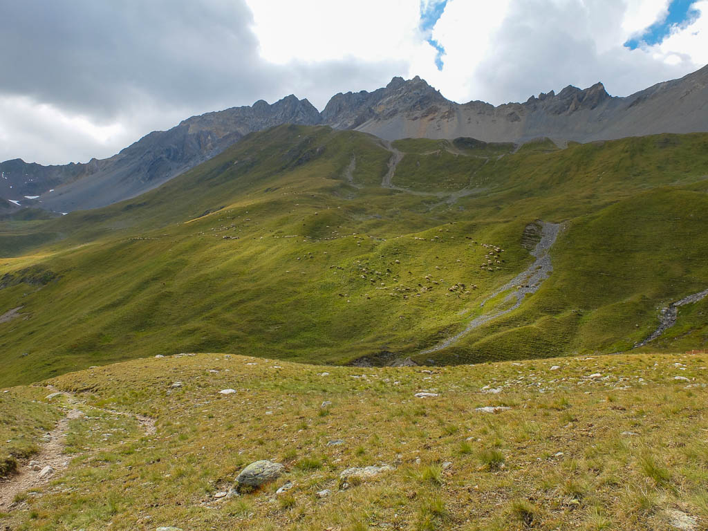 Der weitere Abstieg erfolgt über den Lai Grond und die Alp da la Creusch. Mit flotten Schritten über das Weidegelände der Alp da la Creusch: