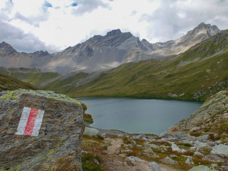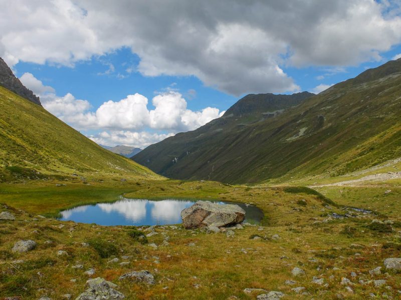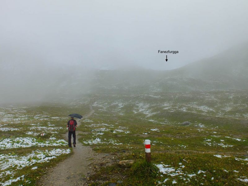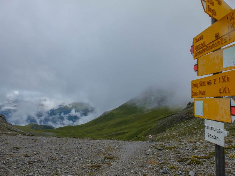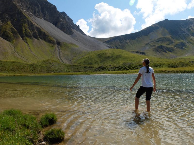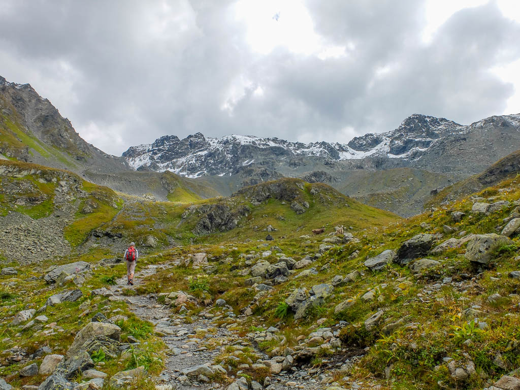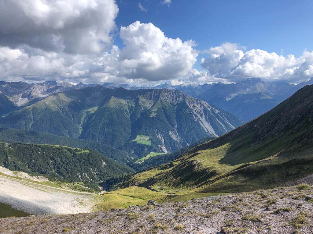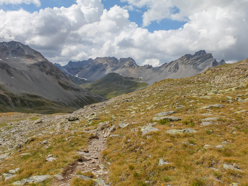 Der weitere Abstieg erfolgt über den Lai Grond und die Alp da la Creusch. Mit flotten Schritten über das Weidegelände der Alp da la Creusch: