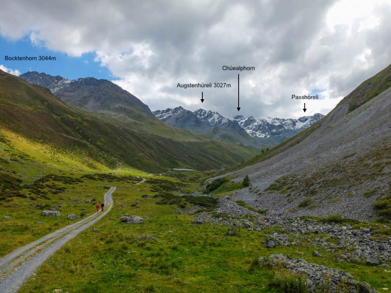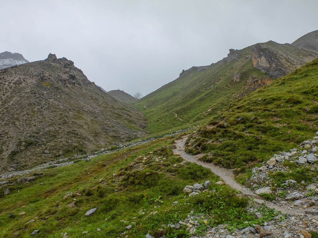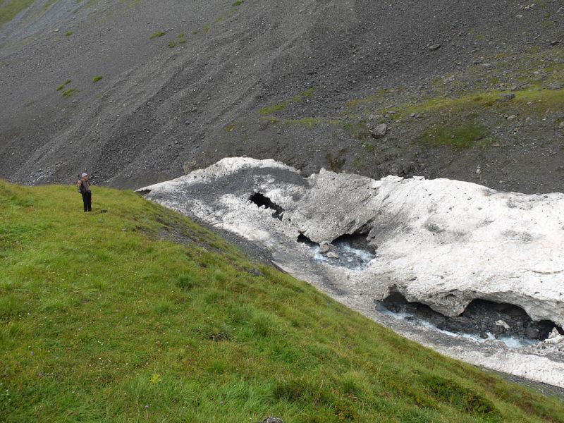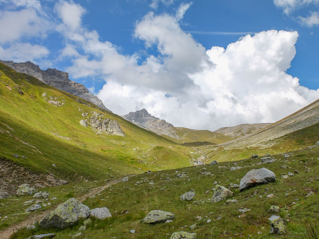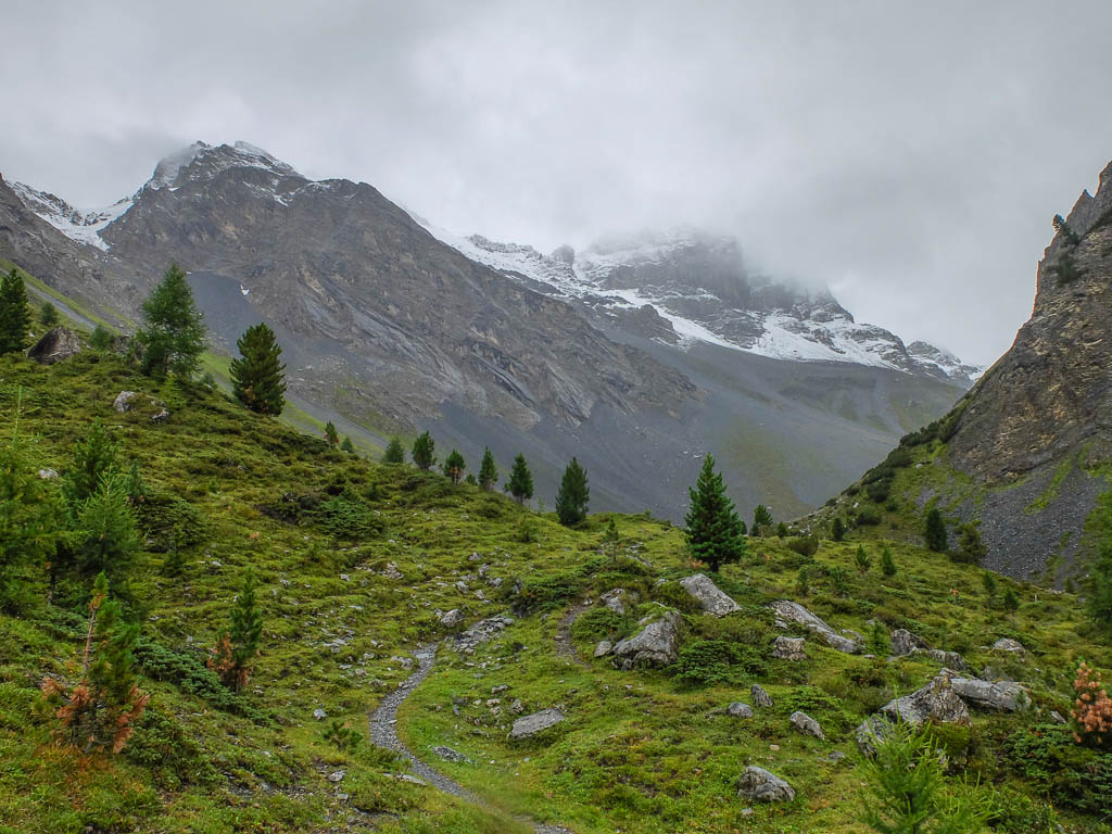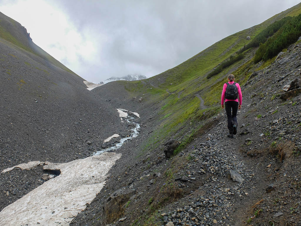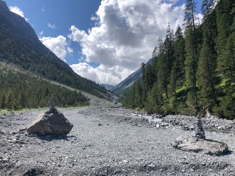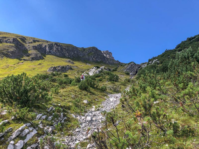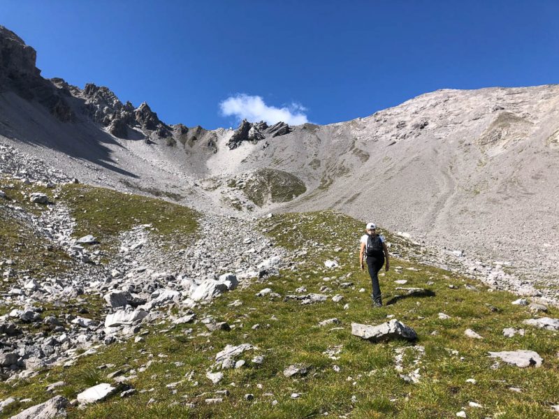 Das letzte Grün am oberen Ende des Schaftobels, bevor das Gelände nur noch aus Geröll besteht: